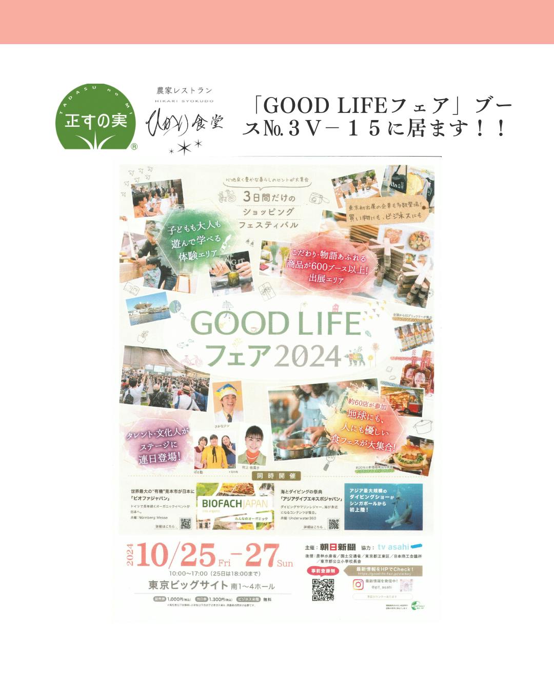 「GOOD LIFEフェア」ブース№3V-15に居ます!!