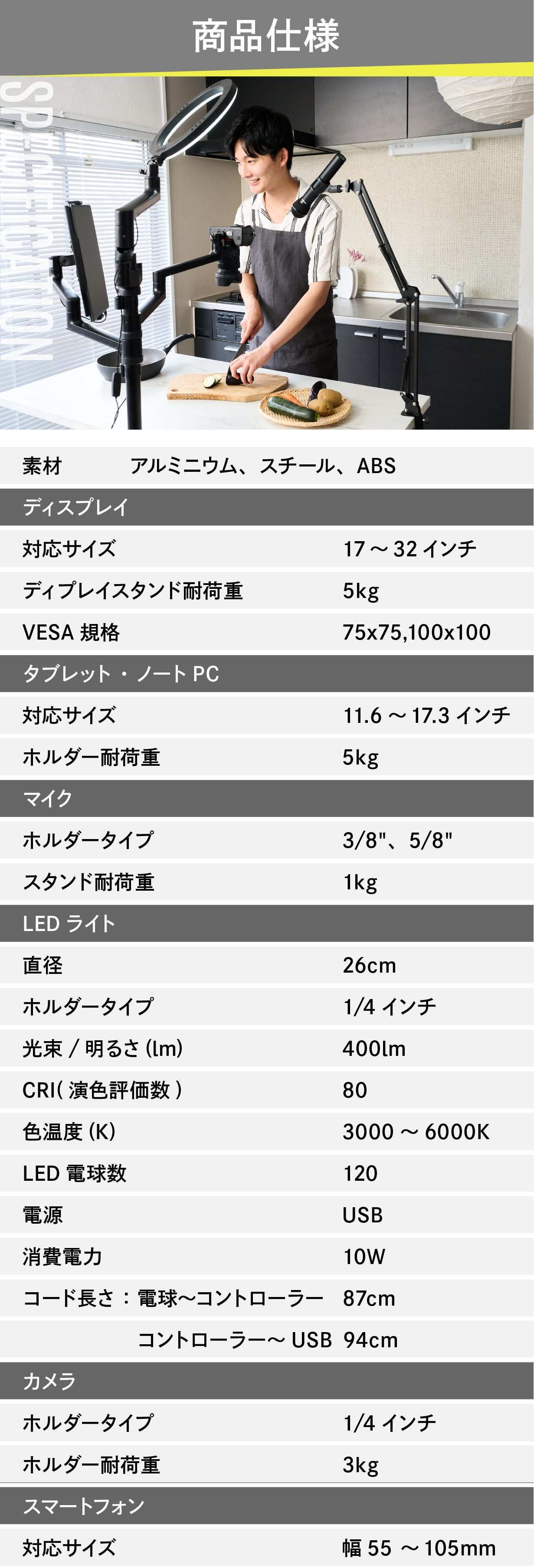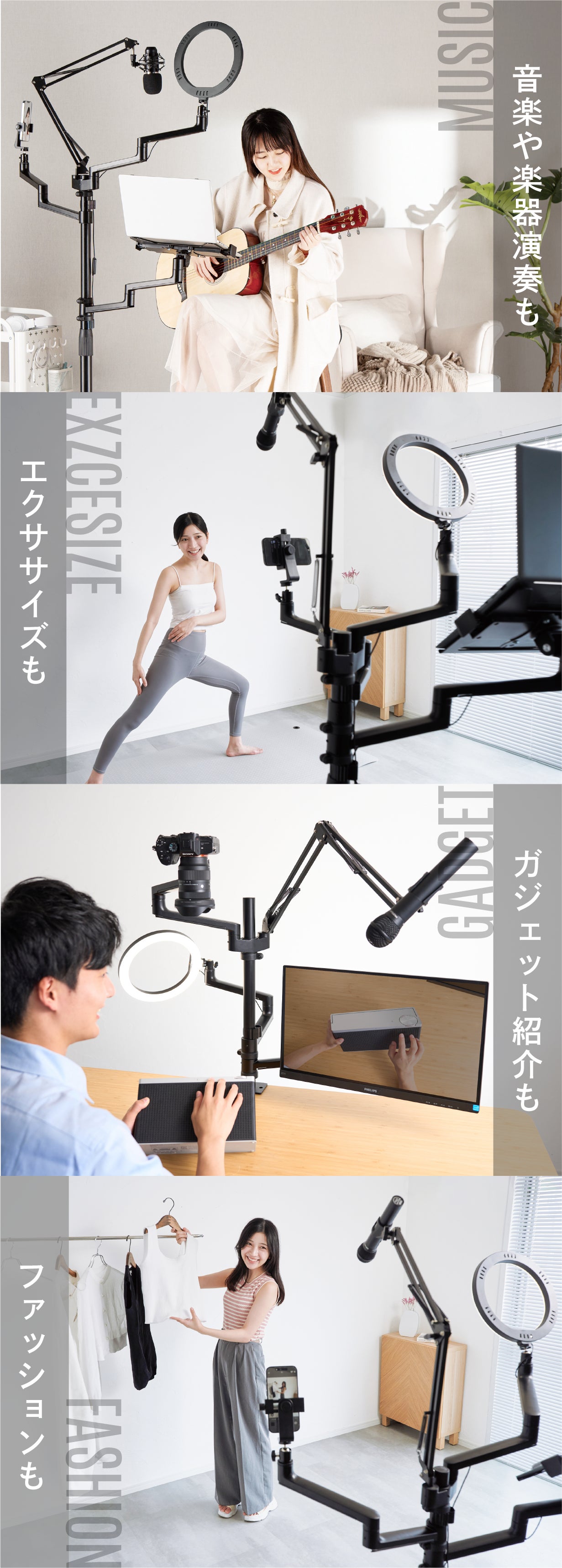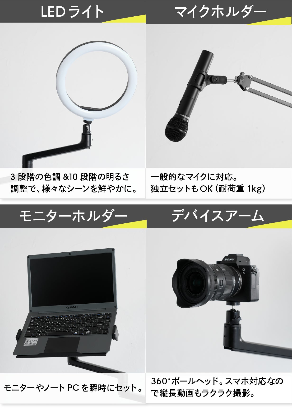 ガジェット紹介やゲーム実況、またはWeb会議などにも便利なデスクタイプ。