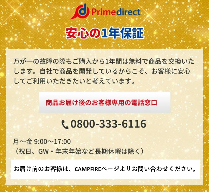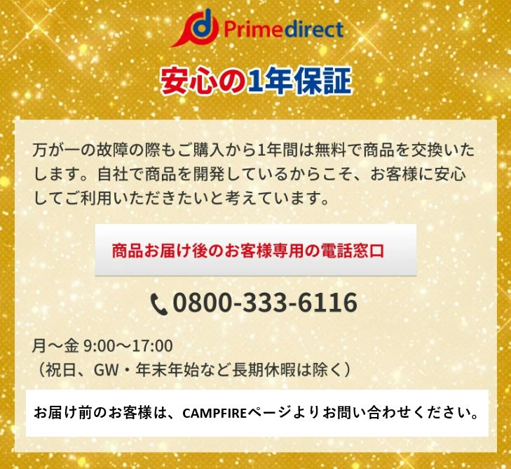 CAMPFIREの性質上、配送遅延のおそれがございます。