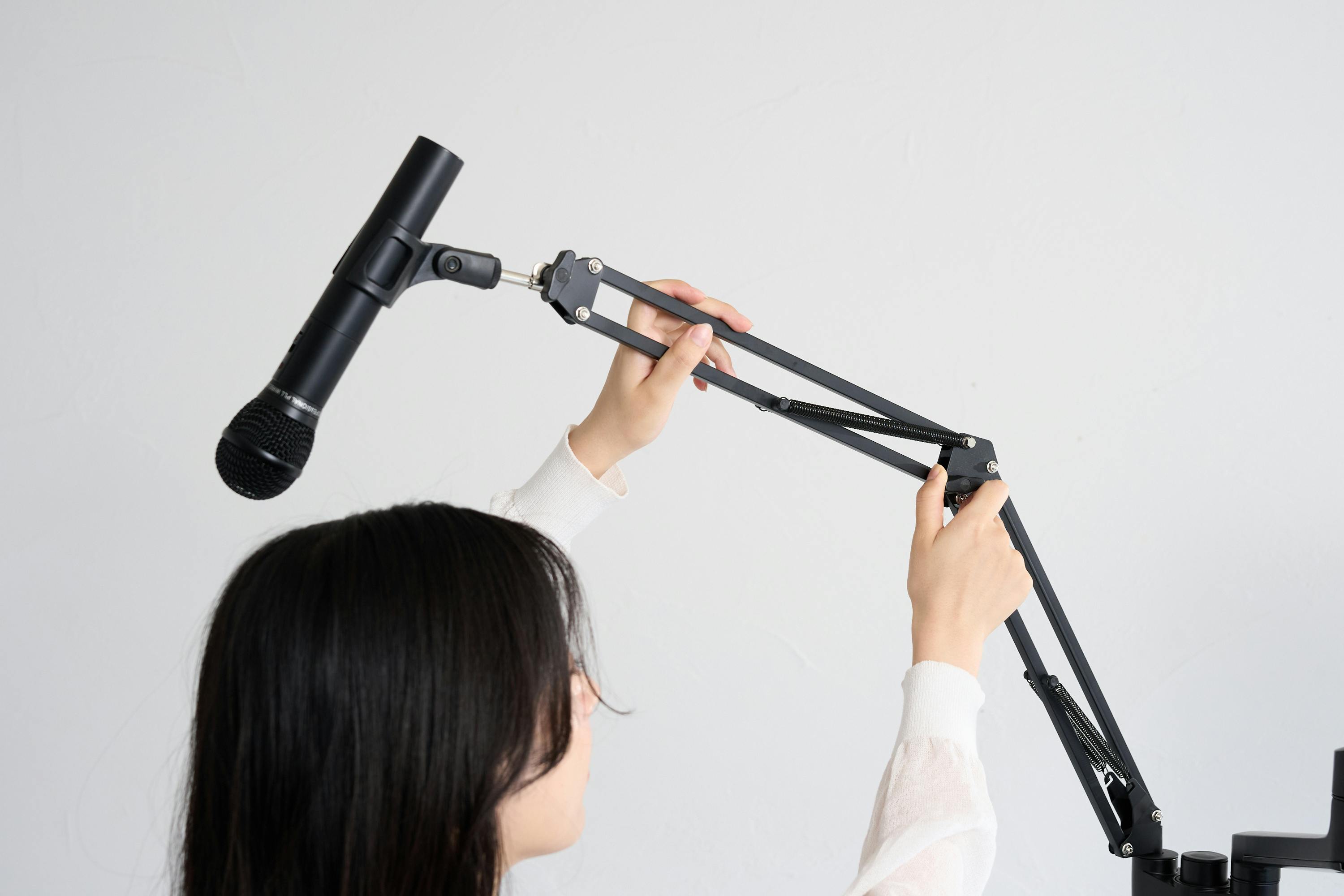 一般的なさまざまな種類のマイクに対応できるマイクスタンド。