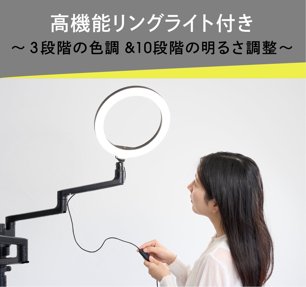 高性能LEDリングライトが標準装備されているのも、「ストリーミングアーム」の魅力のひとつ。
