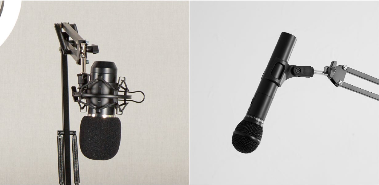 一般的なさまざまな種類のマイクに対応できるマイクスタンド。