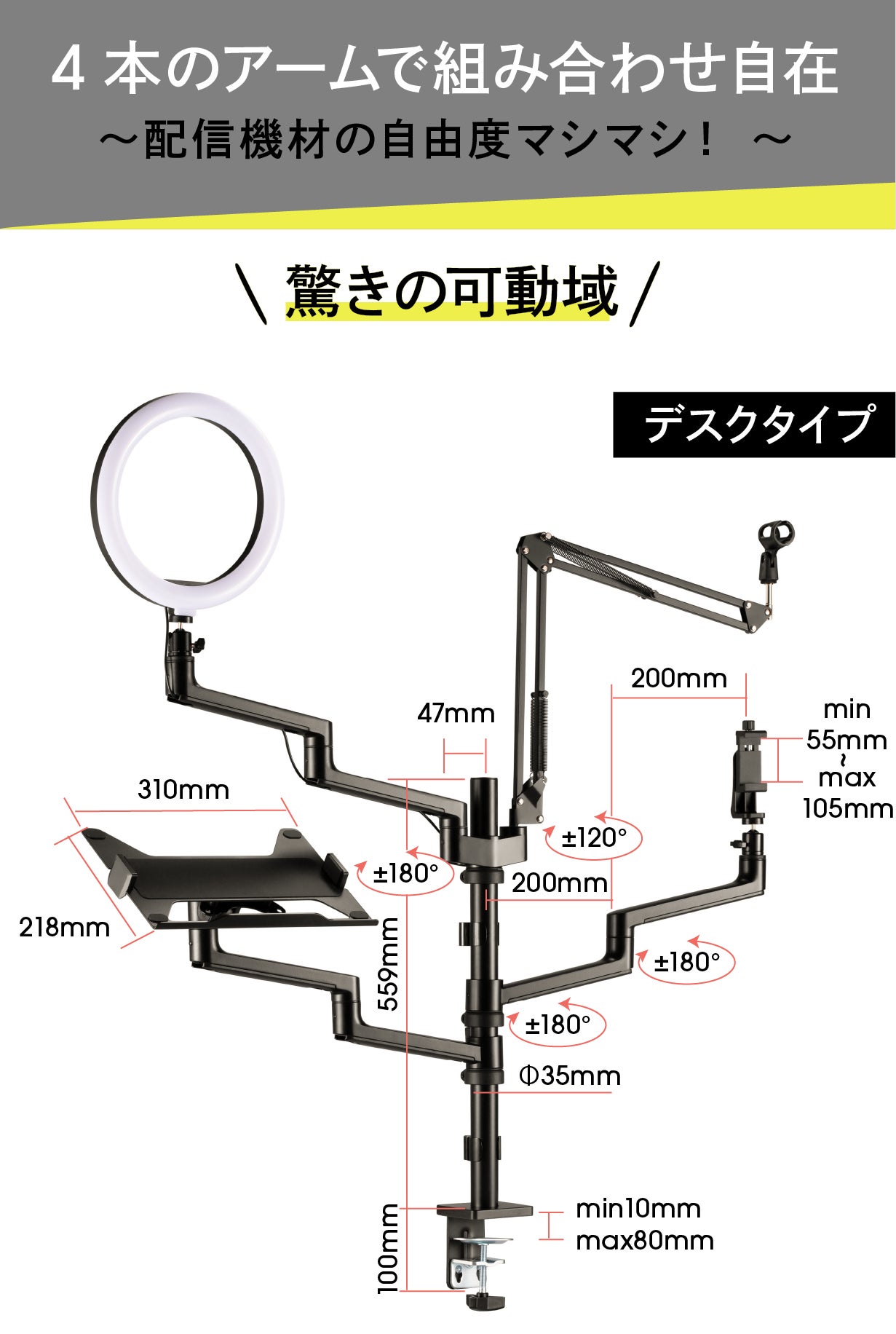ガジェット紹介やゲーム実況、またはWeb会議などにも便利なデスクタイプ。