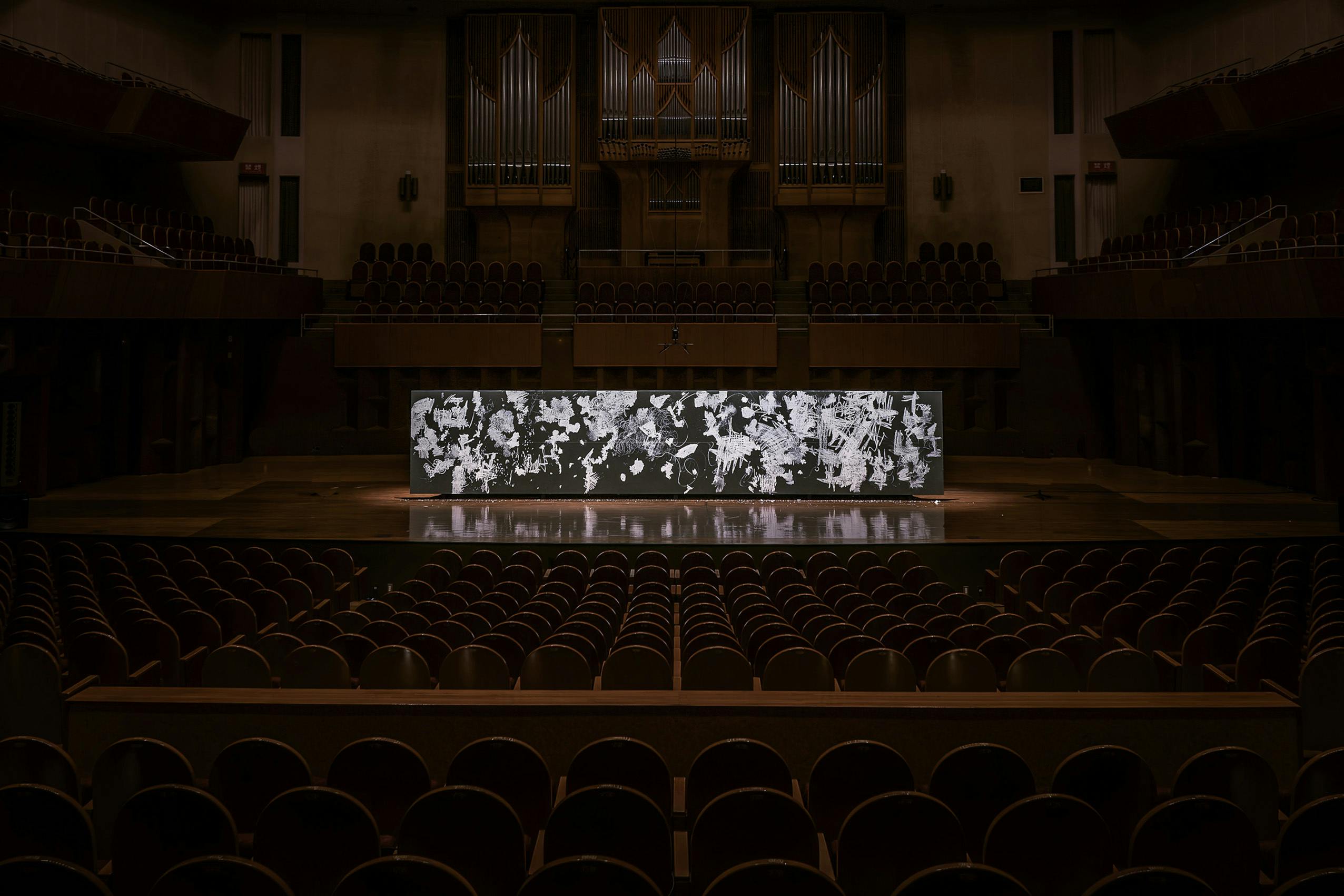 そんなこんなで、公演当日には舞台上で約70分ほどの限られた時間の中、山口は9メートルの絵画「Recital "Sky" at The Symphony Hall 2024」を奏で、描きました!