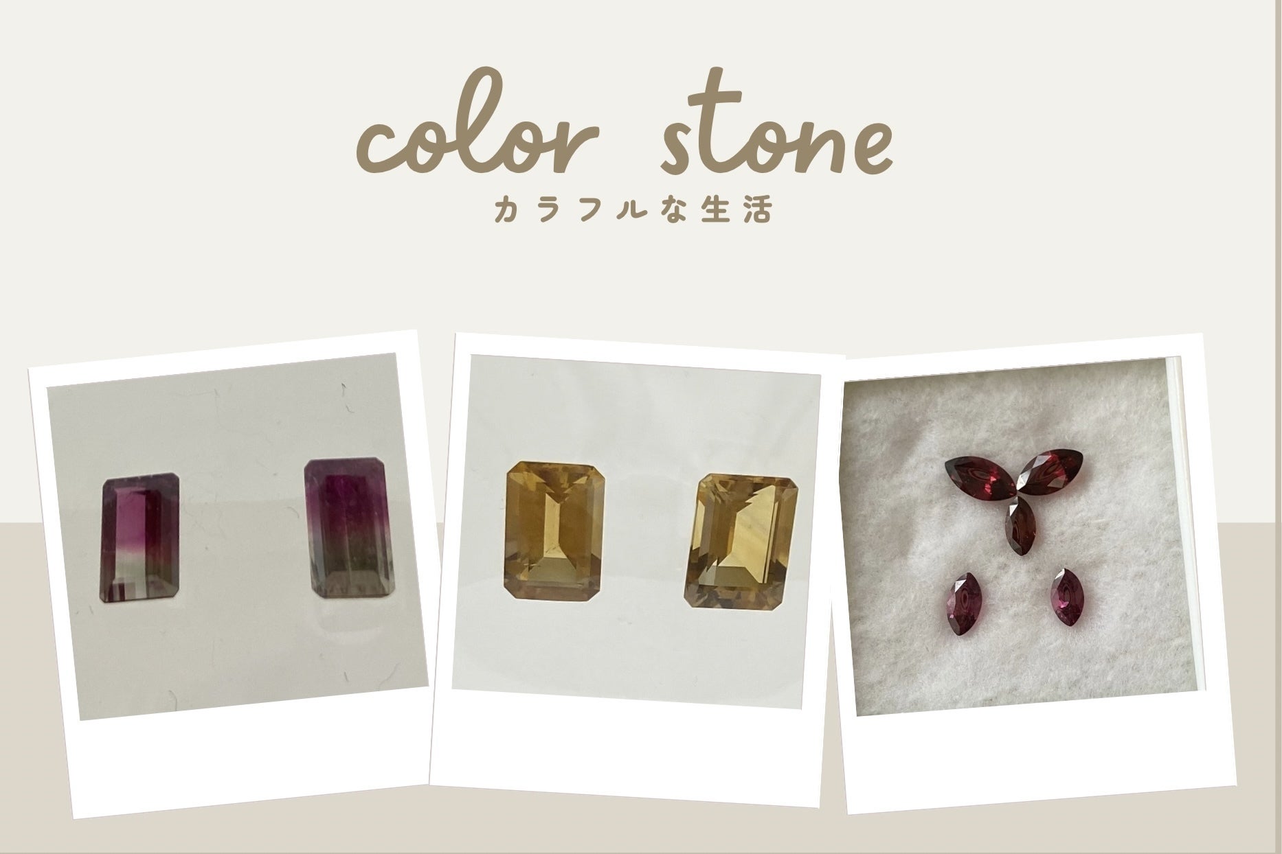 色石、カラーストーンの登場です!こちらのものはWJJメンバーのデザイナーさんが自らの作品に使うために選ばれたものを、このプロジェクトに賛同頂きお宝放出してくださいました写真だとわかりづらくてごめんなさい!*シトリンはとても綺麗ですよ*ガーネットのマーキスカット5ピースセット、これ安すぎませんか‼ *トルマリンはピンクからグリーンにグラデーションになっていて、この小さい石の中に不思議な宇宙を感じますケースに入れてお渡しするので、このまま眺めても良いですね部屋の光や太陽光の下で見るとまたキラキラ輝きが違いますもちろん加工することは可能ですWJJにはデザイナーさん、クラフトマン、たくさんいるのでご相談くださいね【きれいな石でオリジナルのジュエリーの相談ができる】11月9日、10日原宿でお待ちしています。リターン品は限定1ずつです。早い者勝ちですよ!