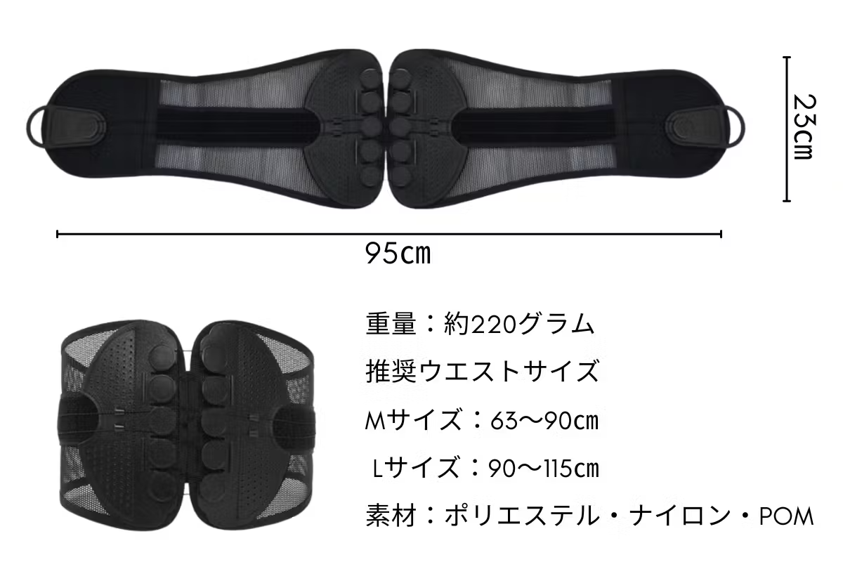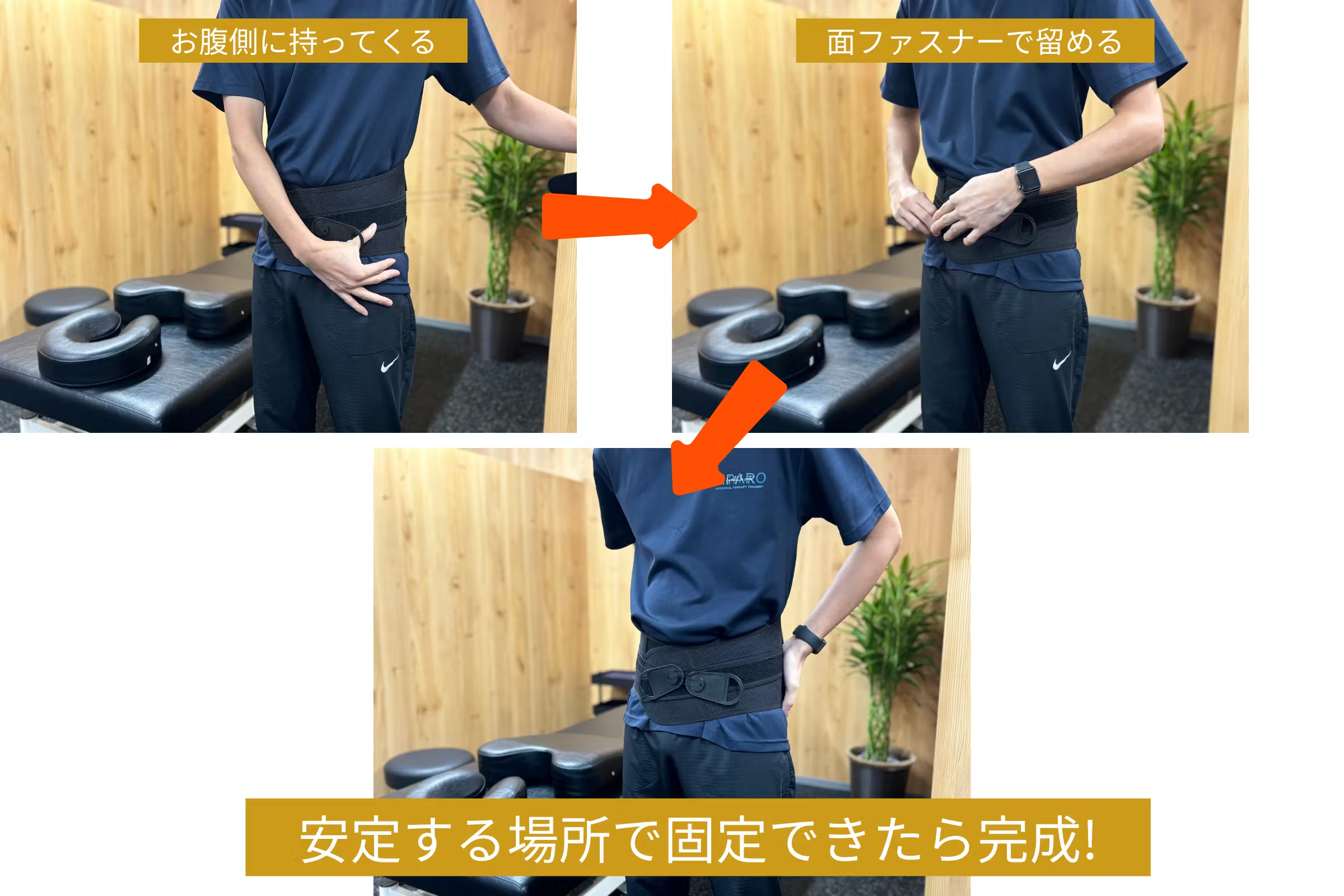 腰部に装着することで、骨盤を安定させることができ、腰部の負担を軽減することができます。