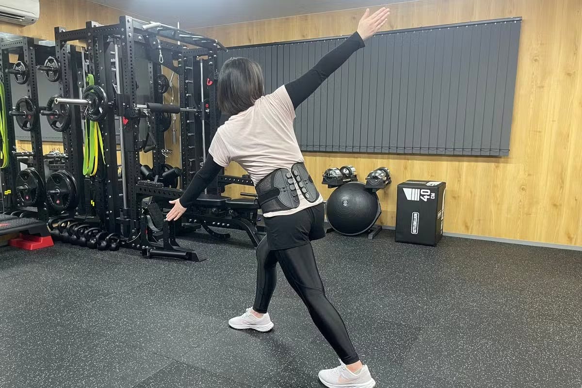 IAPベルトを巻くことで、骨盤が安定し、股関節、胸椎の動きが出しやすくなります。長時間歩くと身体が痛くなる方などにおすすめです。