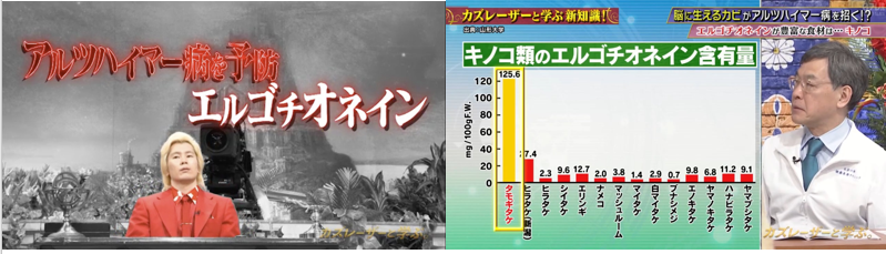 (放送の際は「エルゴチオネインがアルツハイマー病を予防」という内容でした)