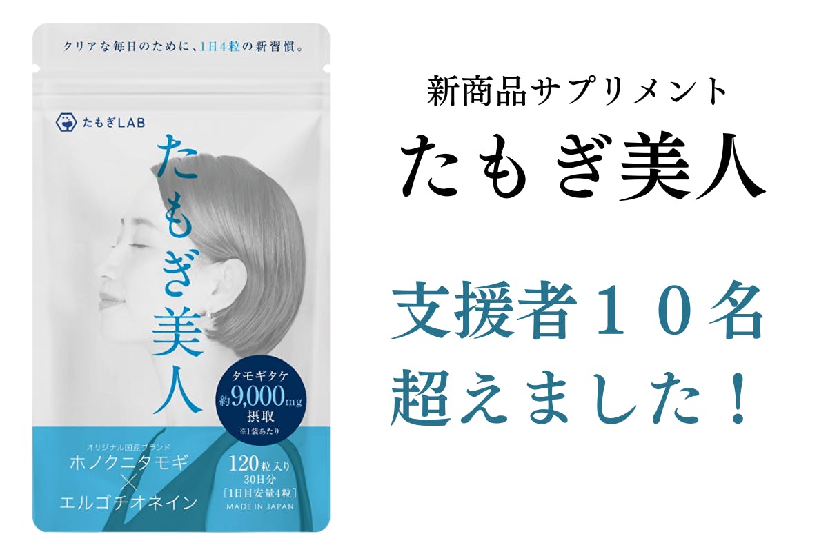 2024/12/31 19:03本日でクラウドファンディングが終了となります!ご支援を頂きました皆様、本当にありがとうございました!また、2024年も終了となりますので、2025年も「たもぎ美人」を宜しくお願い致します。皆様にご支援を頂きましたおかげで「たもぎ美人」は発売前にも関わらず、取り扱いしたいという企業様と契約を締結する運びとなりました。大量ロットでの卸販売となりますので、この勢いに乗って2025年も頑張って参ります。ありがとうございました! もっと見る