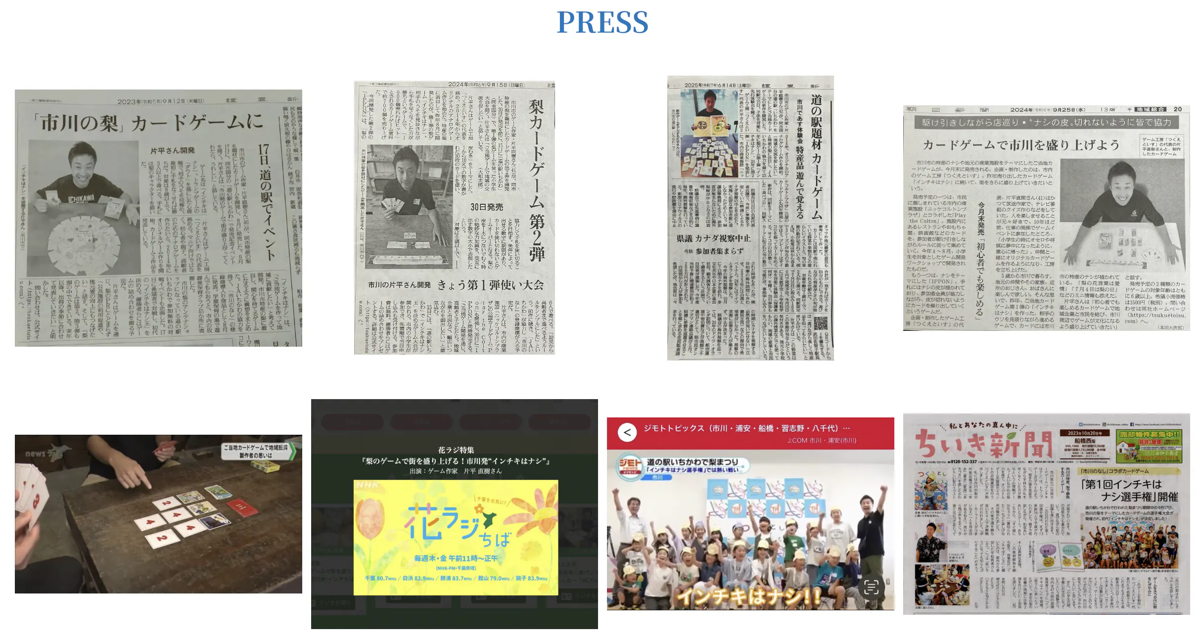 現在までに2023年、千葉県市川市の特産品の梨に注目し、JAいちかわの協力を得てご当地カードゲーム第1弾「インチキはナシ」、2024年に第2弾 「IPPON」を発表。同年、市内の商業施設ニッケコルトンプラザ公認ゲーム「PlaytheColton」、2025年に道の駅いちかわオリジナルゲーム「食べゴロ」を開発しました。