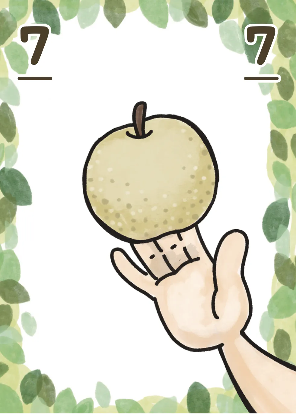 選んだ梨が「1人だけならそのままもらえる」「2人なら《収穫カード》の大きい数字を出した人がもらえる」というように、平等に与えられた「1」〜「8」の手札《収穫カード》を巧みに使いながら、上手に大きな梨を手に入れていくことが鍵となる戦略ゲームです。