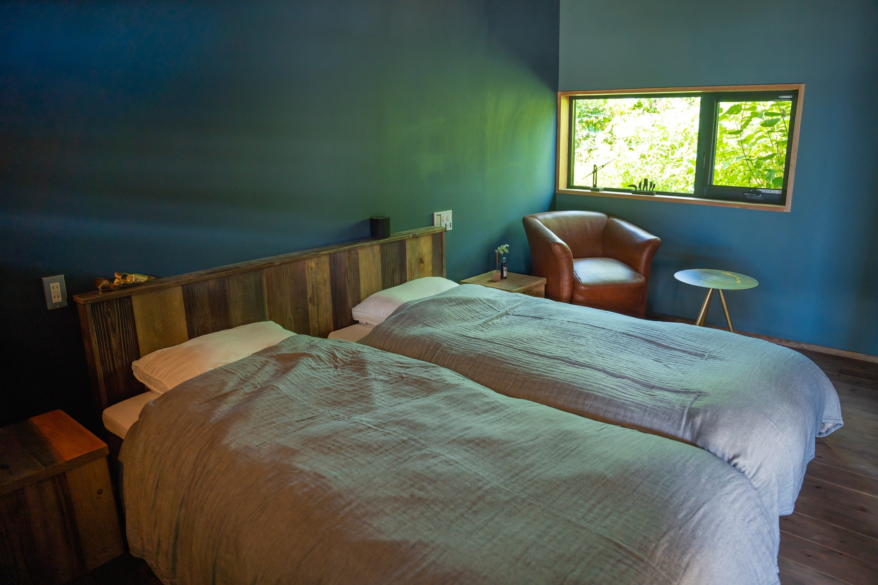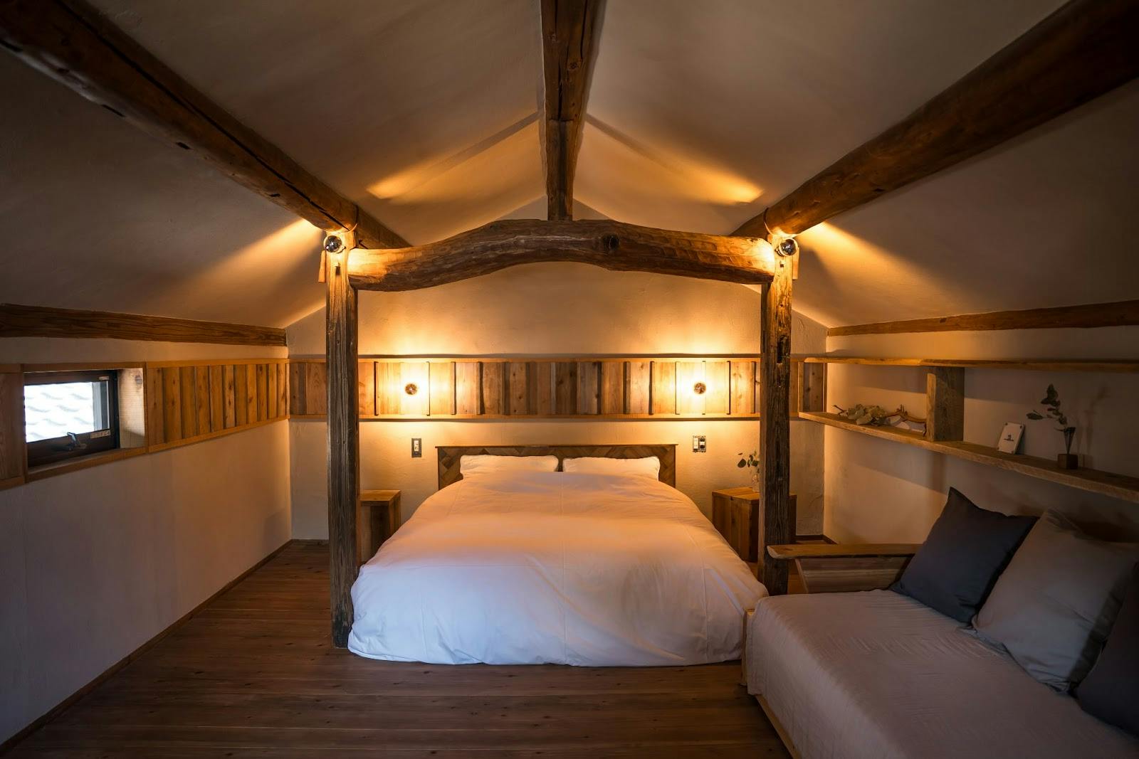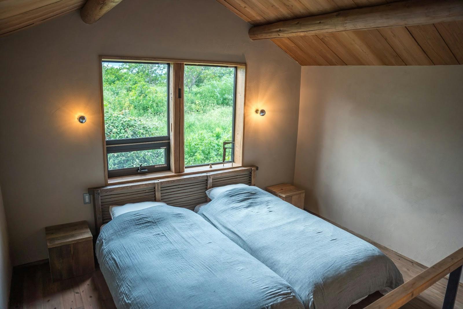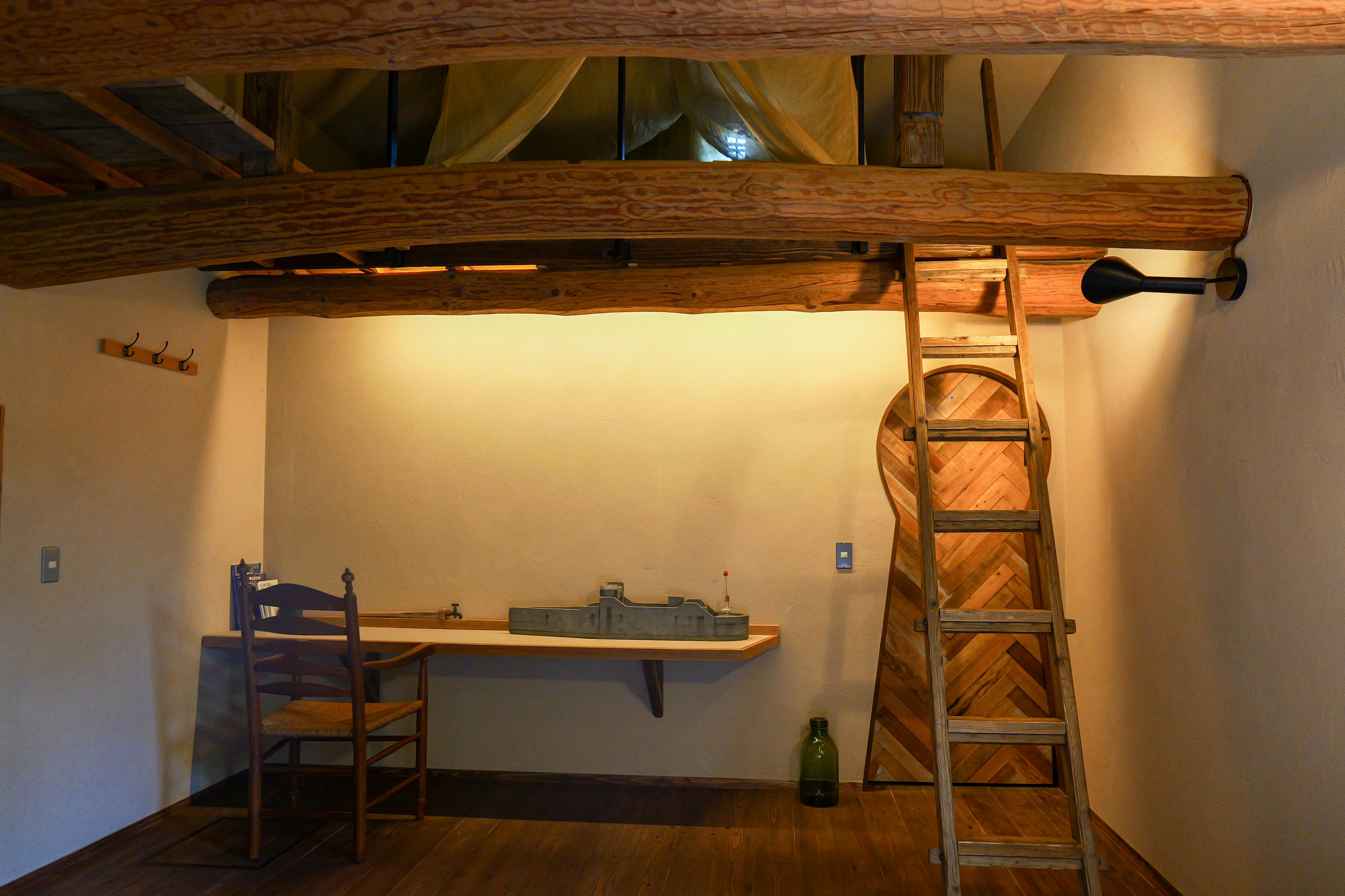 「みず(水の棟)」は、童心に返り、冒険心を呼び覚ますロフトとツリーハウスのお部屋。寝室は二階にあり、ロフトには、まるでツリーハウスのような小屋があり、子供の頃に戻ったかのような無邪気な気持ちで過ごせる空間です。