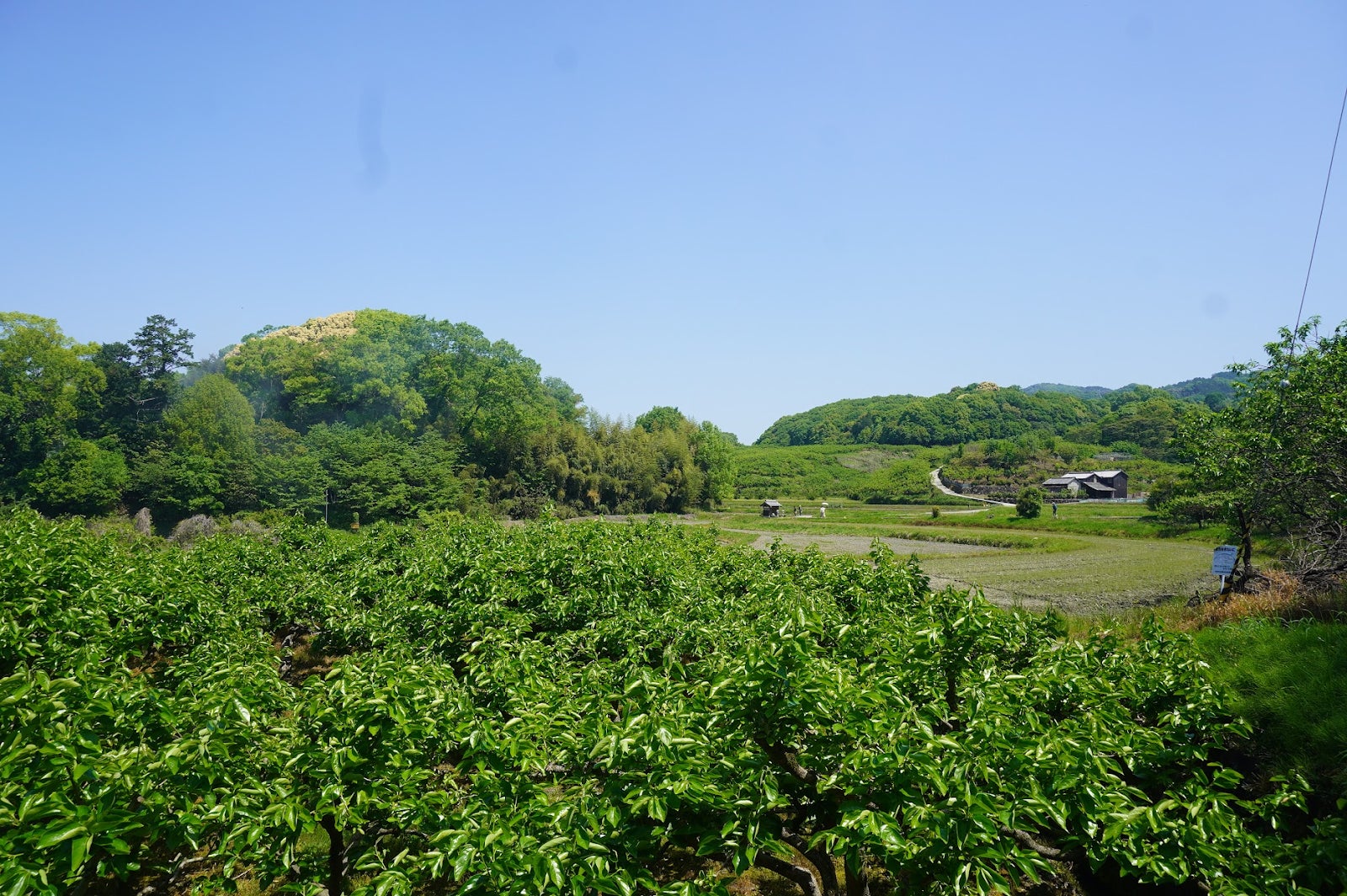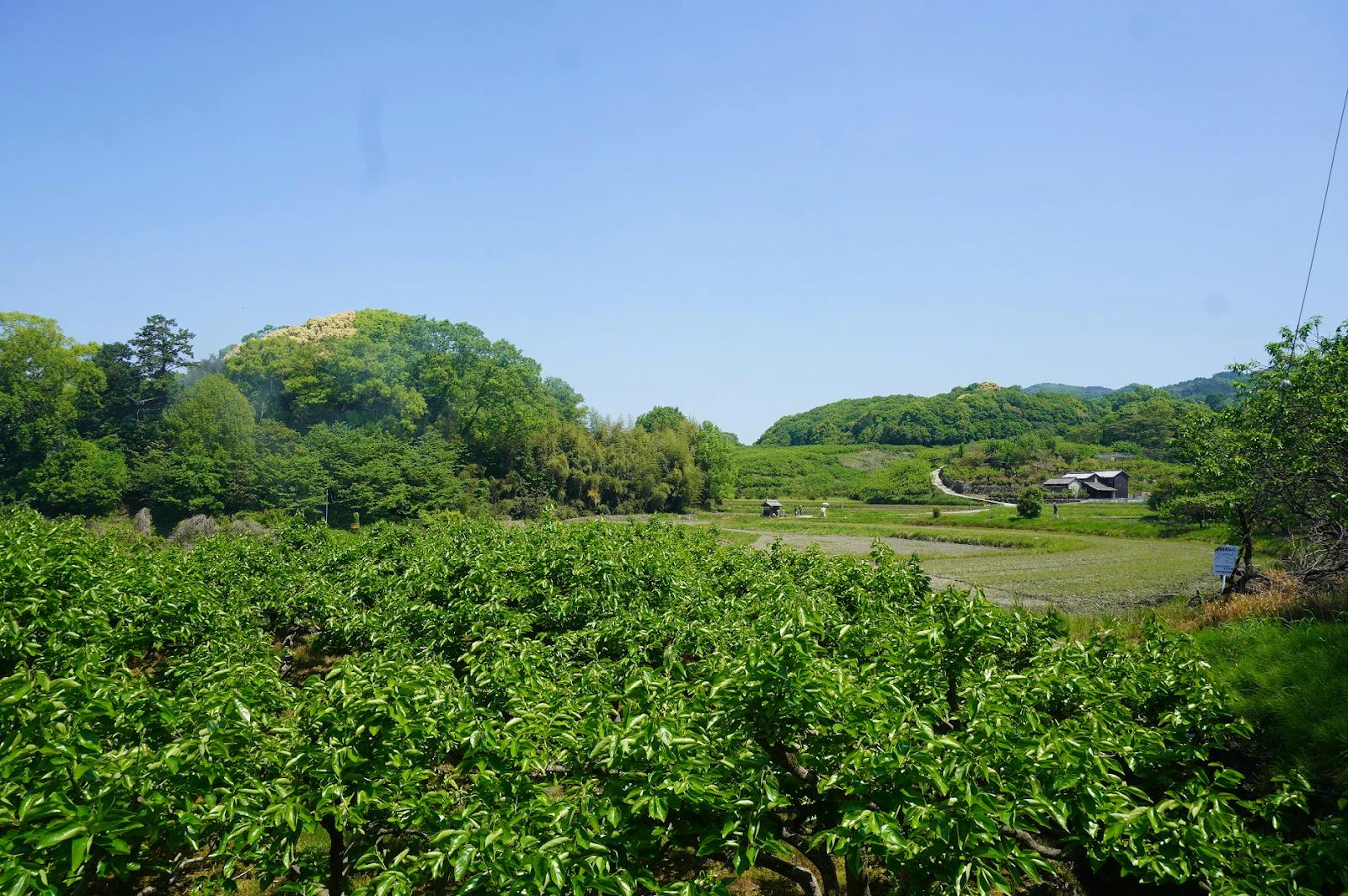 かつては果樹園として利用されていた古墳ですが、長らく耕作放棄地になっていました。私たちはこの古墳を敬いつつ、現代に合った形で人と自然が共存する場にしていきたいと考えています。墳丘にはかつて植えられていたお茶の木なども残っており、いずれは古墳のお茶をつくって宿でご提供したり、墳丘の上でヨガや瞑想などのワークショップ、イベントなどが行えるようにしていきたいです。