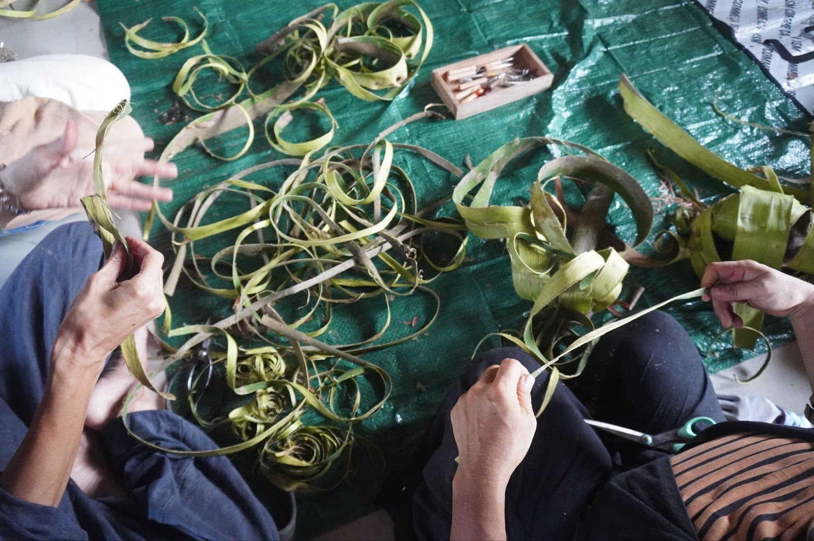 アカメガシワの樹皮を使った籠づくり