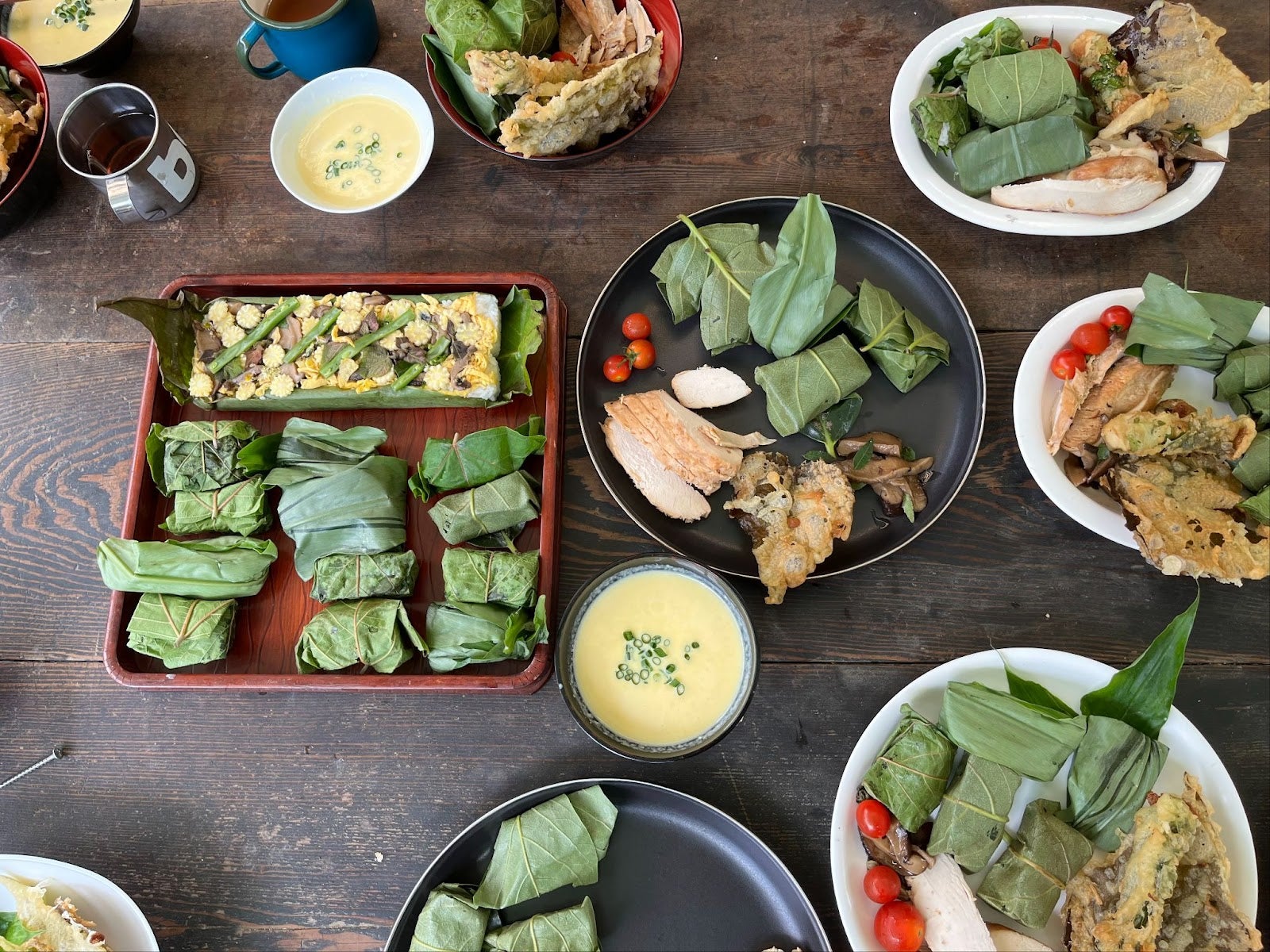 茗荷やアカメガシワの葉を用いた寿司づくり