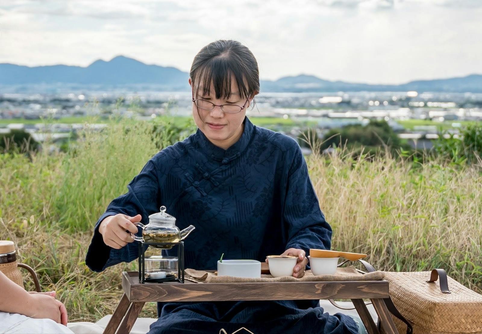 ティーセットをレンタルして墳丘で一息