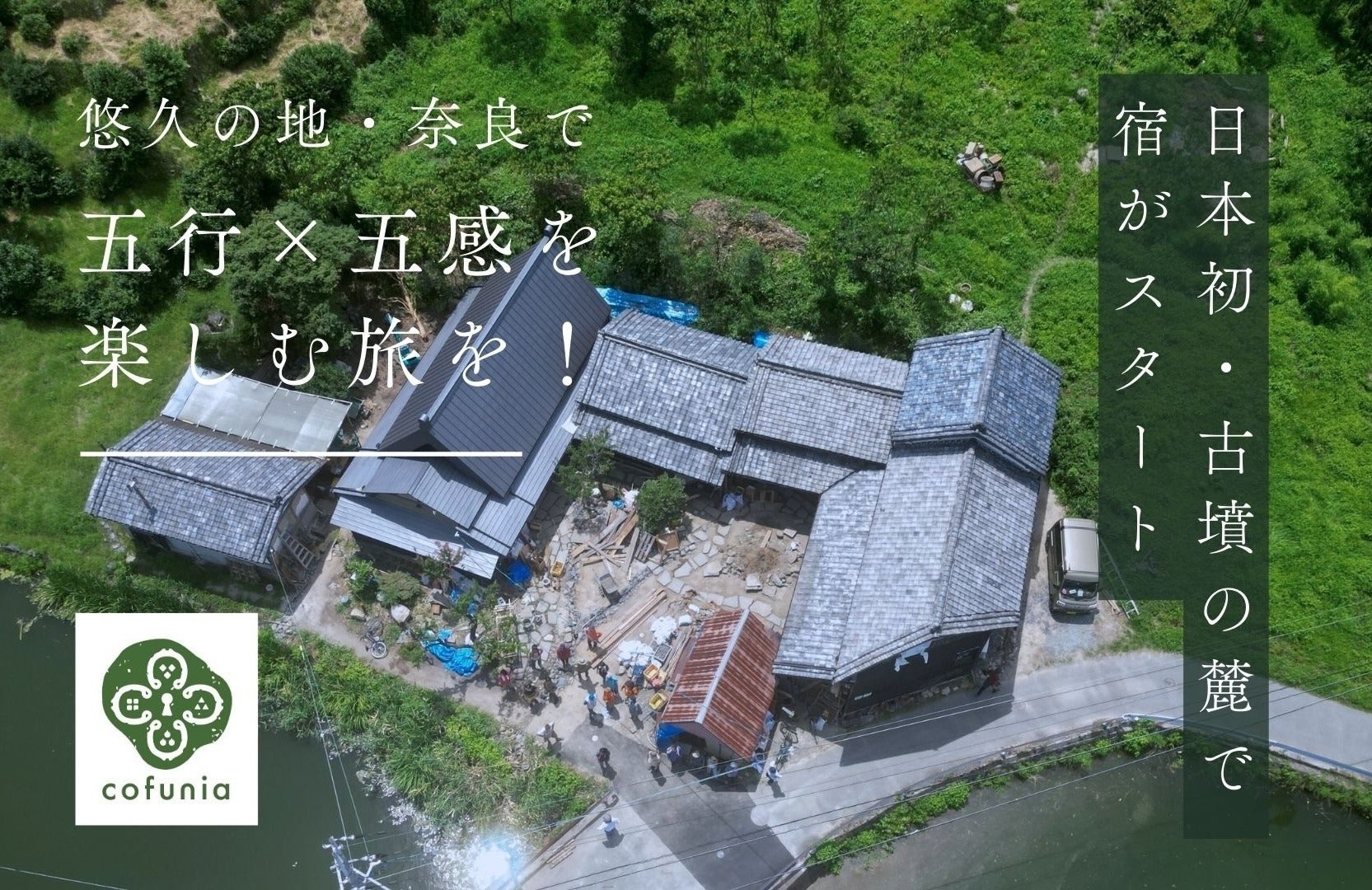 奈良の古墳の麓に新たに誕生する宿「cofunia」。奈良の特産品や体験、宿泊プランなど、この特別な場所での体験をリターンとしてご用意しました。