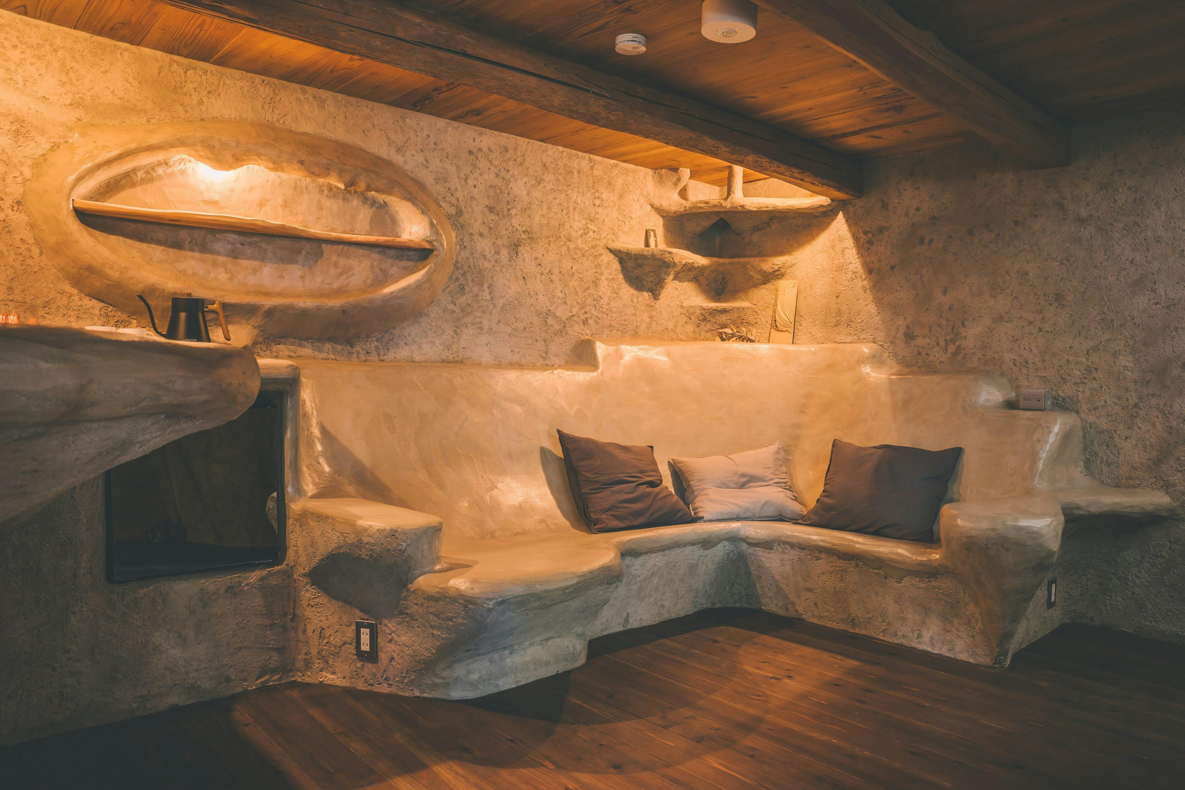 古代の陰陽五行の思想を取り入れた「金・水・土・木・火」の5つの個性的な宿泊棟を作りました。お部屋を見学したいというご要望を多くいただいております。