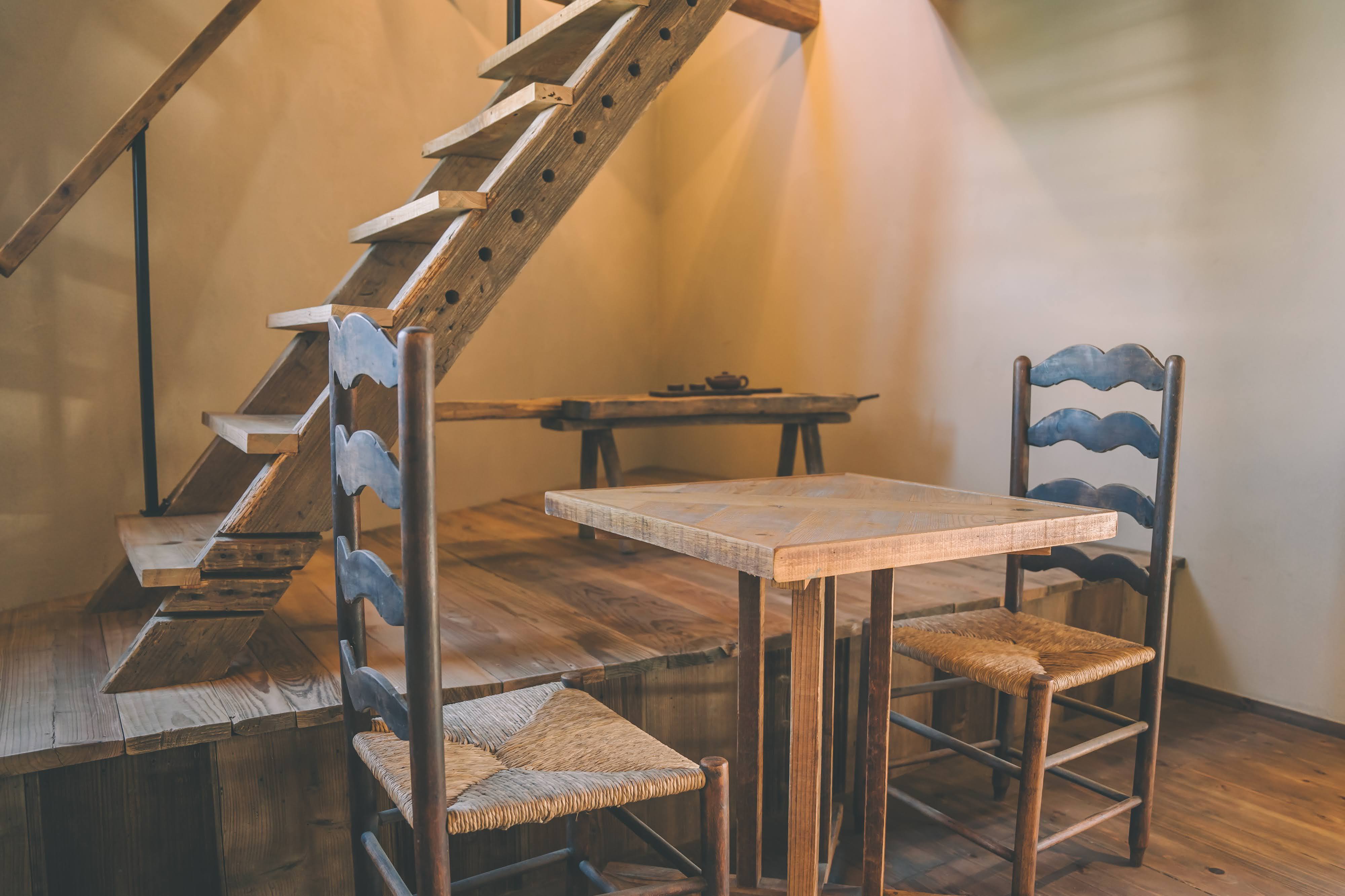 一番広々とお使いいただけるのが「木」の部屋。温かみのある古木を使って、ログハウス風の雰囲気に。地元向けの内覧会では、一番落ち着くと、ご近所さんからの評価が高く、人気のお部屋でした。