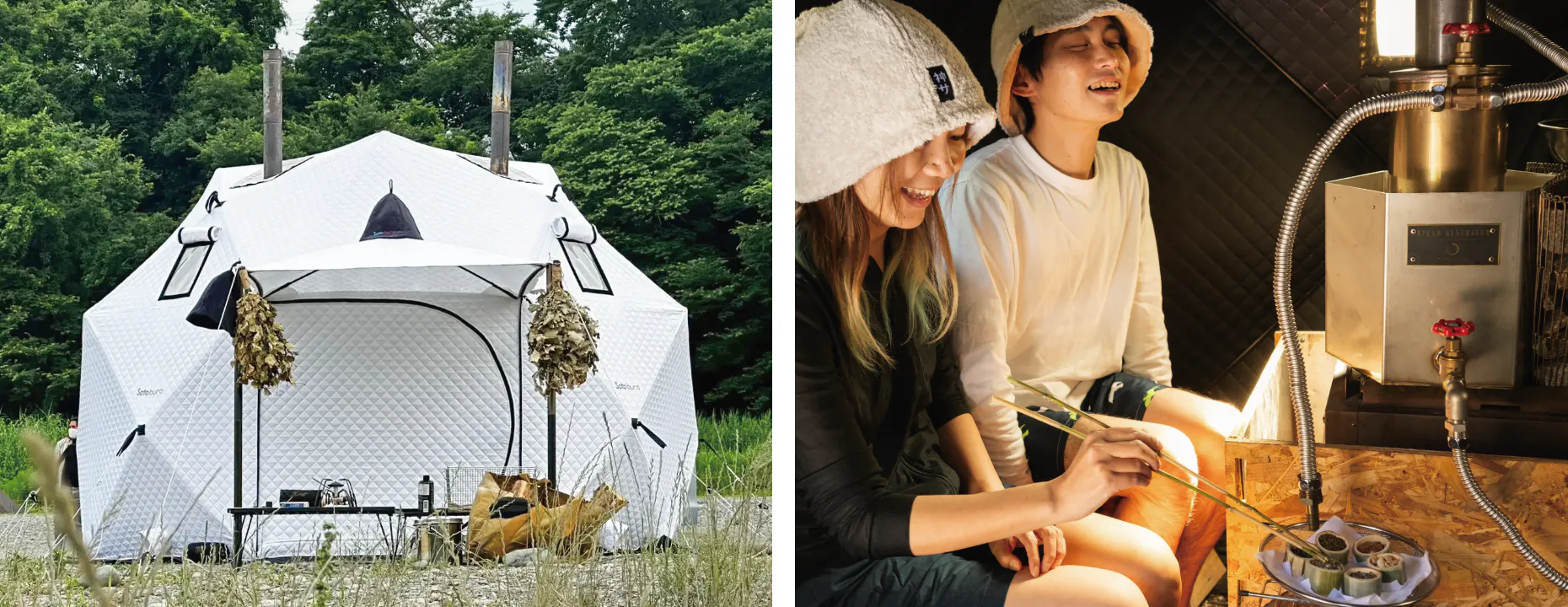 ● テントサウナ:広々空間で2台のストーブがインストール可能な「Sotoburo DOME12」を購入予定。それを「科学」の視点でサウナとスチームを徹底研究するアカデミックサウナレーベル「madsaunist」がセッティング監修してくれます!他ではなかなか味わえない「快適ウルウルのサウナ体験」を楽しみにお待ちください!