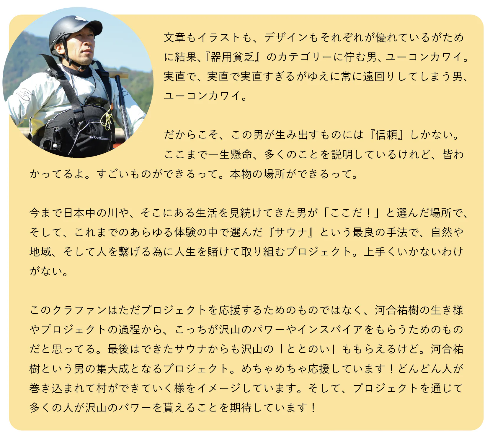 この信念を胸に、川とサウナの可能性をこの“奥の院”のような場所から広めていきます。「川とサウナを愛しすぎた者たちが人生かけて作るサウナ村」って、単純に興味ある!面白そう!って思っていただけたなら、どうか、ご支援とご協力のほど、どうぞよろしくお願いいたします!!