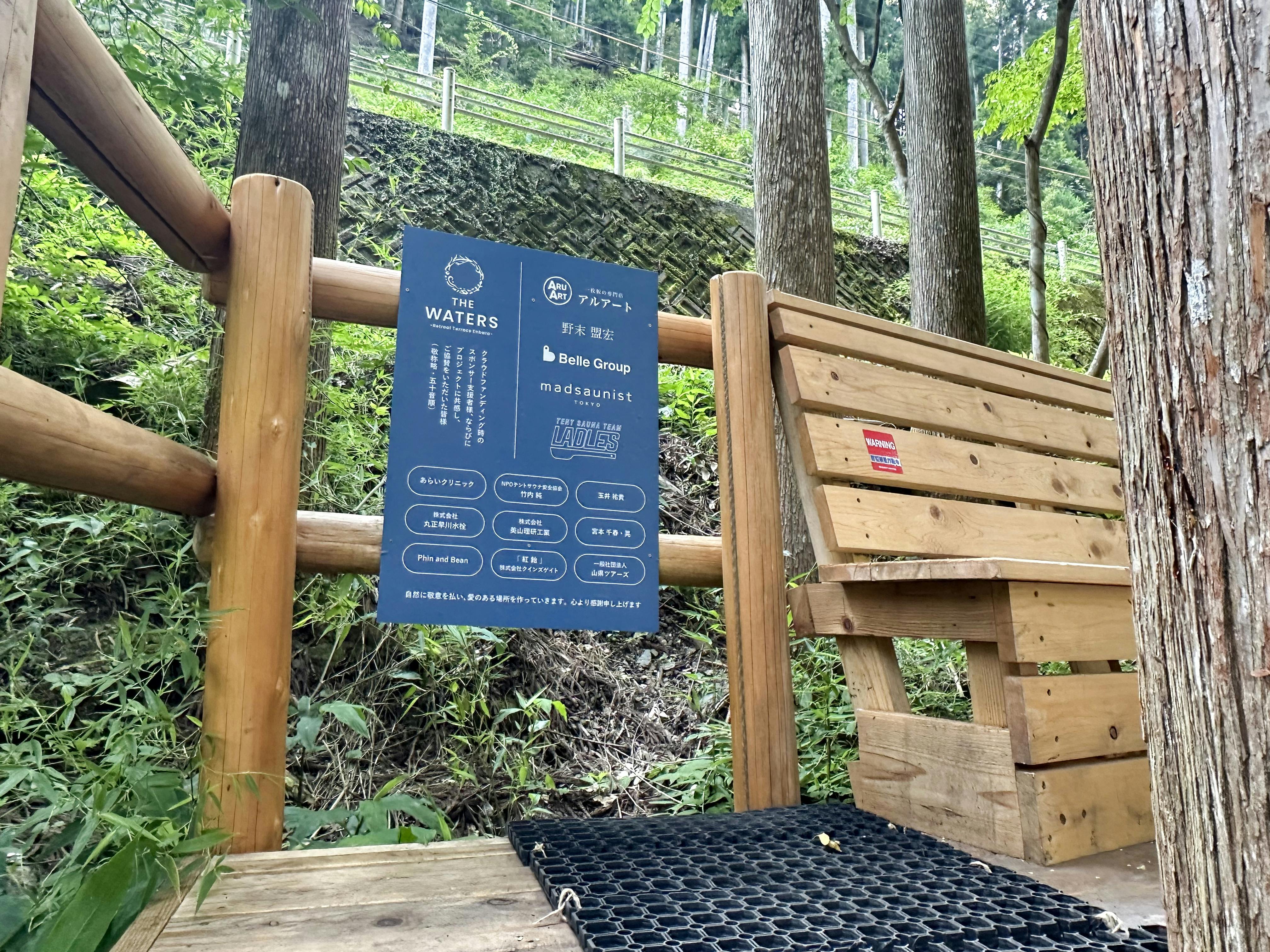 2025/07/08 11:36このたび、THE WATERS -Retreat Terrace Enbara-の入口(階段を上がって真っ先に目に入る場所)に、クラウドファンディングのリターンである「スポンサー看板」を設置しました。この看板には、ブロンズ・シルバー・ゴールドスポンサーとしてご支援いただいた皆さま、また資金だけでなく貴重な技術や多大な時間、情熱を注いでくださった方々のお名前を、敬意を込めて刻ませていただいています(五十音順にて掲載)。看板の設置は、THE WATERSにとってただの表示物ではなく、「この場を共に創ってくれた仲間たちの証」として、これから来る人々を静かに迎えてくれる存在になってくれると思っています。プレオープンの振り返りと、現在の状況ゴールデンウィークから始まったプレオープン。ご案内の通り、6月末まではクラファン支援者様の優先期間として、多くの方に体験していただき、サウナ・川・薬草・静けさを通じて得られたリアルな声をもとに、日々改善を重ねてきました。7月からはいよいよ一般の方の貸切利用もスタート。まだ積極的な広報をしていないにも関わらず、土日祝の予約はすでに満席が続いており、体験者からは「お世辞抜きに日本一のサウナ施設だった!」「サウナの概念が変わった」「円原川の水は他に類を見ない美しさと気持ち良さだった」とのありがたい声も頂いています。これからの展開とお願い現在は、岐阜県や国の補助金を活用した追加整備(トイレ・更衣室・第二テラスなど)に向けた申請を行っており、本オープンに向けて着実に準備を進めています。まだリターンのご利用が済んでいない方(村民利用チケットや村民イベント参加など)もいらっしゃいます。夏季はどうしても予約が混み合いますので、ご希望の方は早めのご予約をお願いいたします。ご予約は公式LINEより https://lin.ee/dVGCN9n引き続き、THE WATERSは「自然への敬意と、愛ある時間を紡ぐ場所」として、一歩ずつ歩みを進めてまいります。これまでのご支援に、改めて心より感謝申し上げます。そしてこれからも、どうぞよろしくお願いいたします。 もっと見る