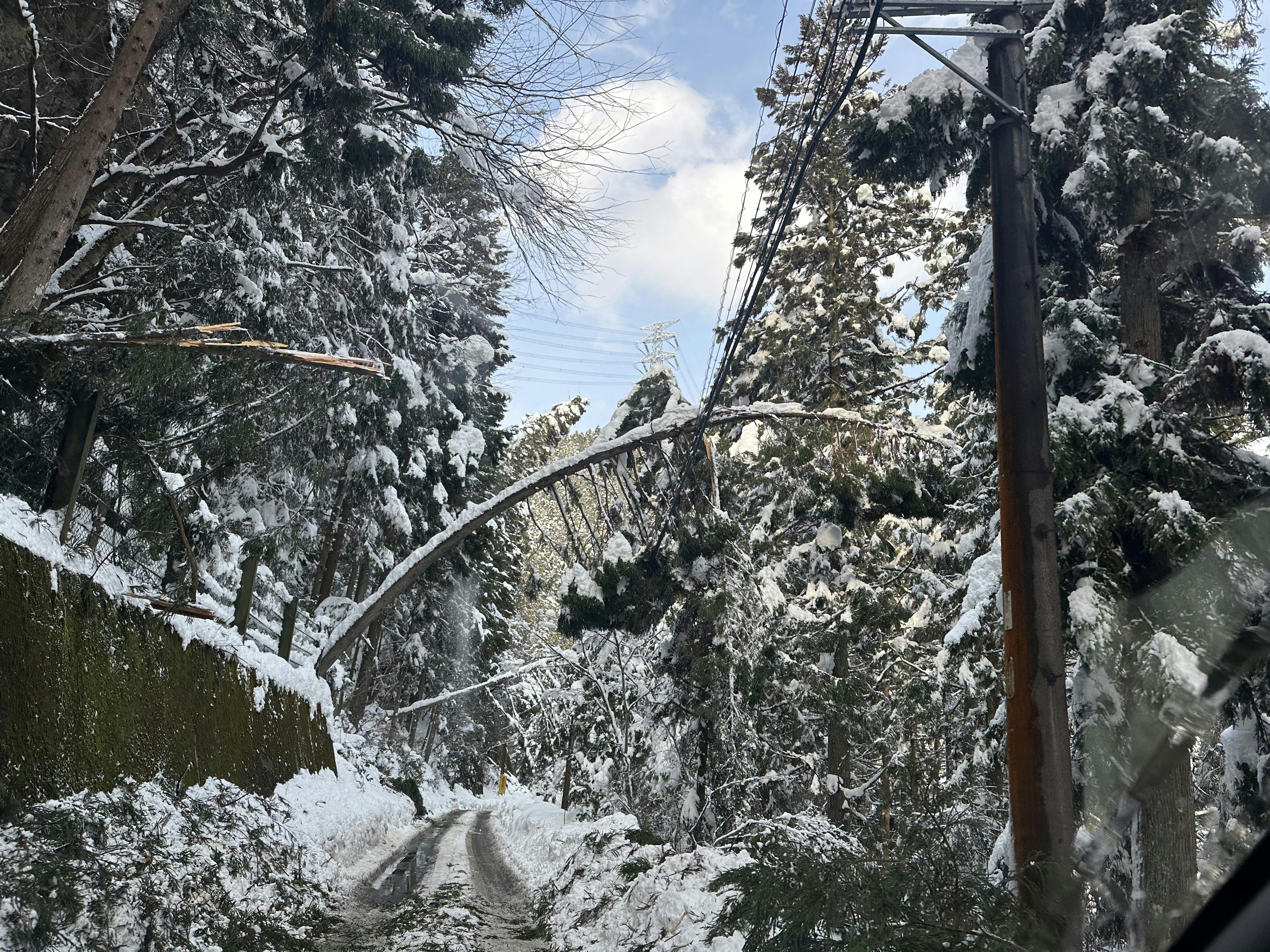 雪の重みによる倒木が至る所で発生しています。