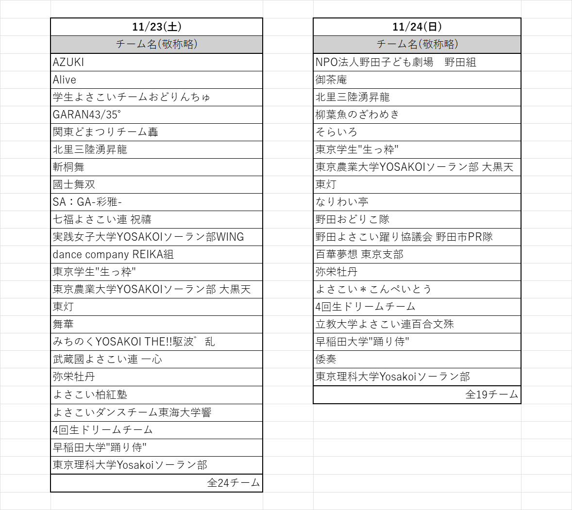 この度2024年11月23日、24日に "理大祭よさこい2024" を開催する運びとなりました。他大学や社会人のチームにお声がけさせていただき、総勢35チーム約800名の踊り子が参加いたします。