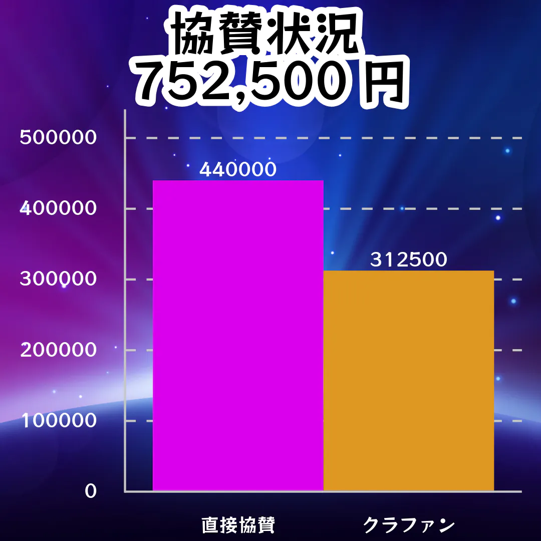 直接協賛合わせまして当初の目標金額に到達いたしました。厚く御礼申し上げます。