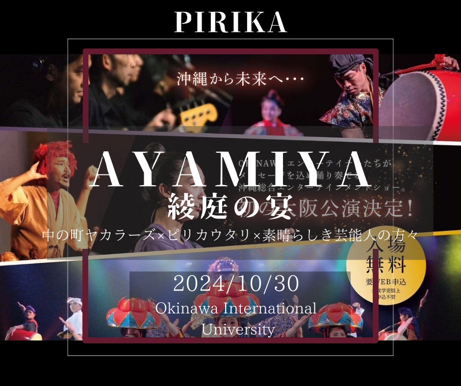 【綾庭の宴ー大阪公演ー】2024年10月30日(水曜)大阪 豊中市文化芸術センター中ホールにて、綾庭の宴ーAYAMIYAーに参加して来ました!今回は団長川勝渚羽太と中村隆都の2人で獅子とエイサー、そして役者として本公演に加わりました。県外の方々に向けての公演であった為、「ありんくりん」ひがりゅうた氏、「ゆいゆいシスターズ」のメンバーである宮城汐花氏等と、初めて一緒に舞台に立つ演者の皆様やスタッフの方々との少ない中での稽古で呼吸を合わせ、無事大成功で終える事が出来ました!大阪の地にて凄く感じたことは、沖縄の芸能は沖縄のものだけじゃなく、多くの方々に知られ、伝わり、根付いてる。とても素晴らしいことであり、故郷の沖縄に改めて誇りを持ち、舞台にたちました。この綾庭の宴という舞台は沖縄市ミュージックタウン音市場にて、定期的に公演されております!団長である僕も何度か出演させて頂いております。今回は大阪での公演でしたが、来年には!沖縄にてまた上演されると思うのでその時は是非!足を運んで頂けたら幸いです。改めて今回会場に足を運ばれたお客様、そして演者の皆様、スタッフの皆様、関係者の皆様本当にありがとうございました!また舞台にてお会いしましょう。よろしくお願いします!