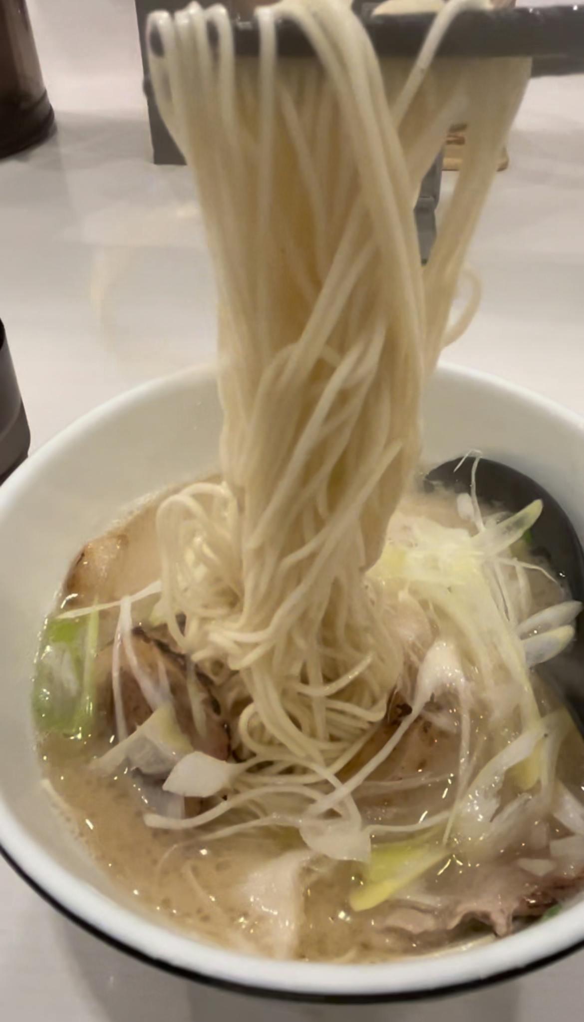 あっさりとんこつで、すっきりした味。麺はバリ硬で注文したけど、替え玉を硬めしたら、こっちの方がスープにマッチしておいしかったです。次は魚介とんこつに挑戦します。