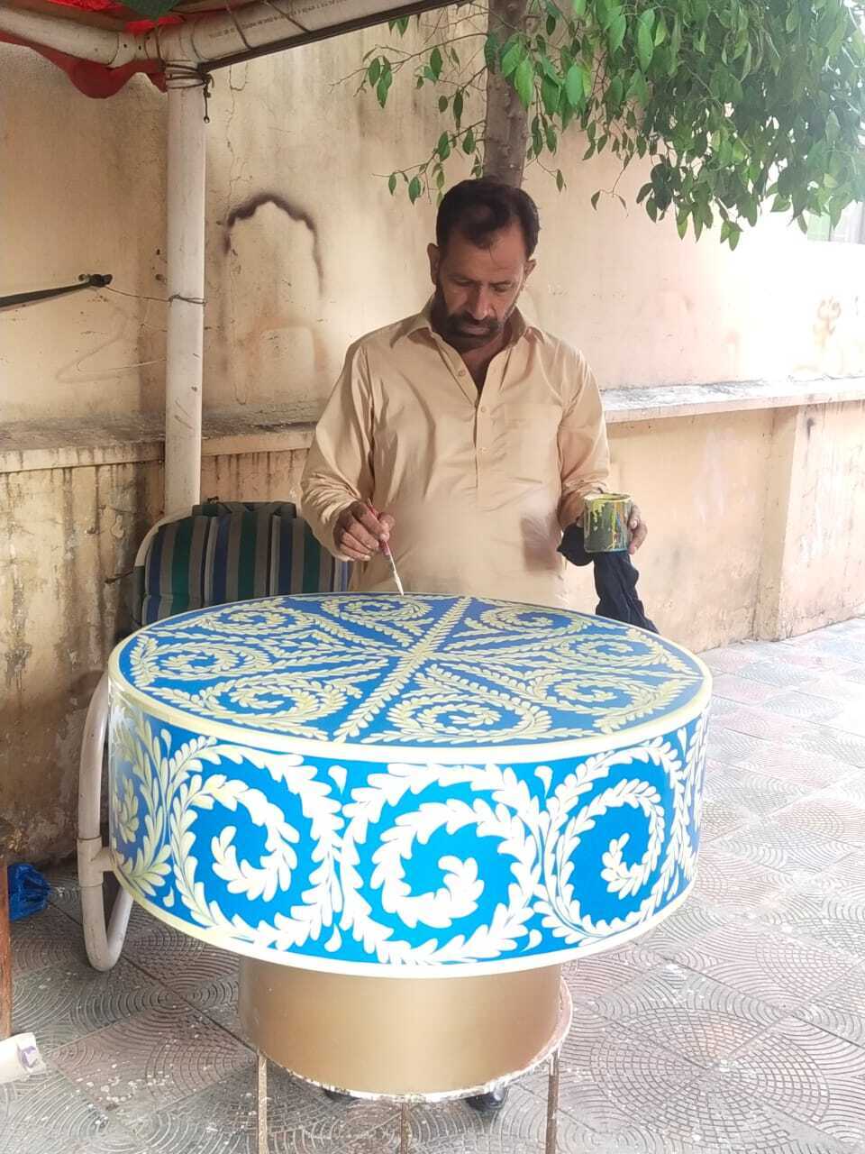 ひとつずつ、ホーローの容器などの下処理をし、下地を塗り、ペンキで色を重ねていく仕事ぶりはお見事でした。そして今回のリターン商品であるトラックアート雑貨もアーメッドさんが仕上げて下さいます!!