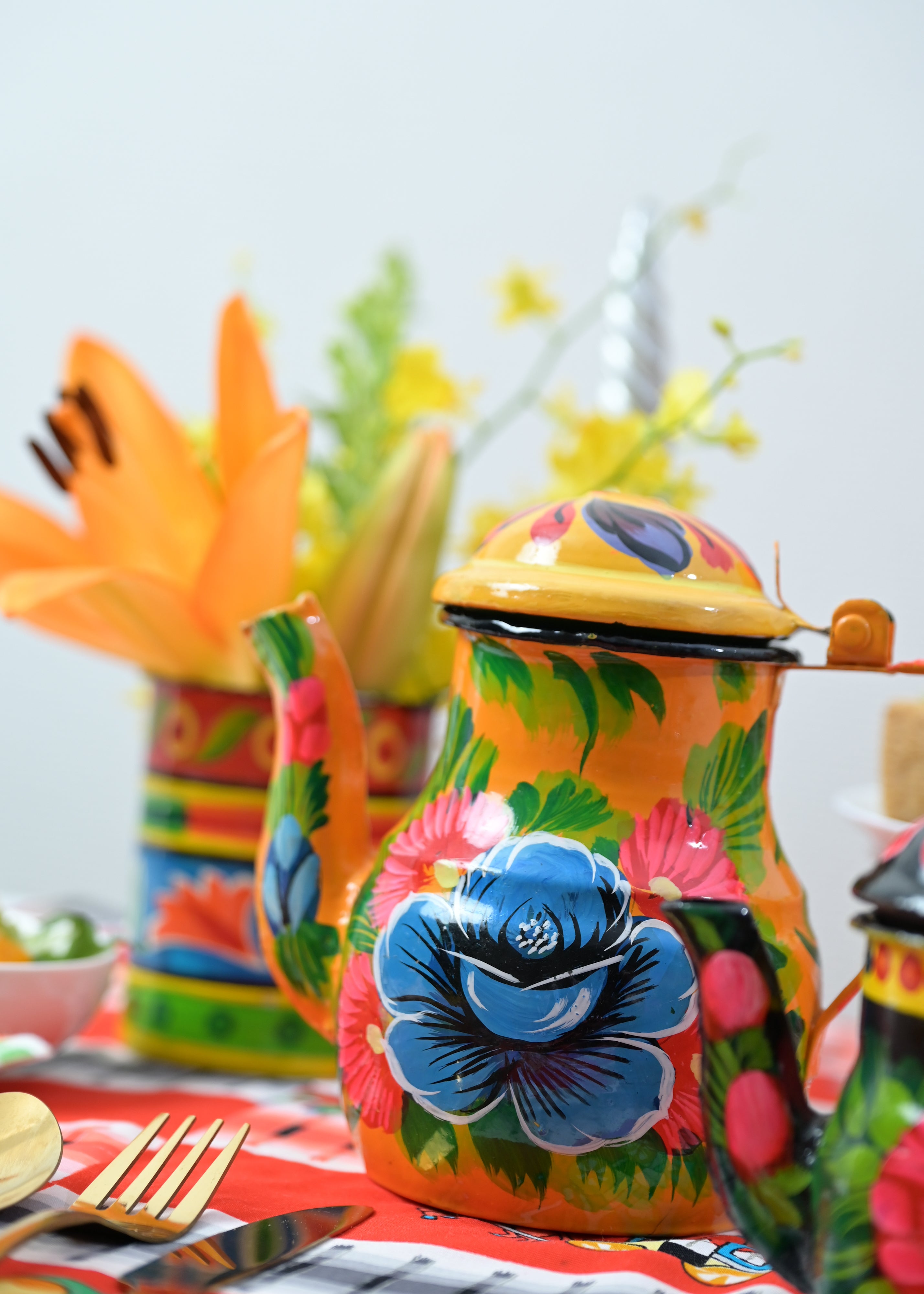 トラックだけではなく、他のモノにも装飾できないか?と・・そして誕生したのがキッチン雑貨にトラックアートの装飾を!ということでキッチン雑貨にトラックアートを施した雑貨が誕生します。
