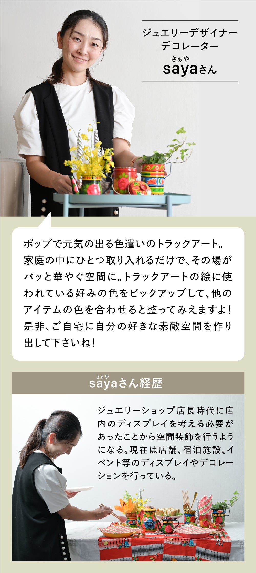偶然に見かけたトラックアート雑貨のカラフルで元気な雰囲気に惹かれ