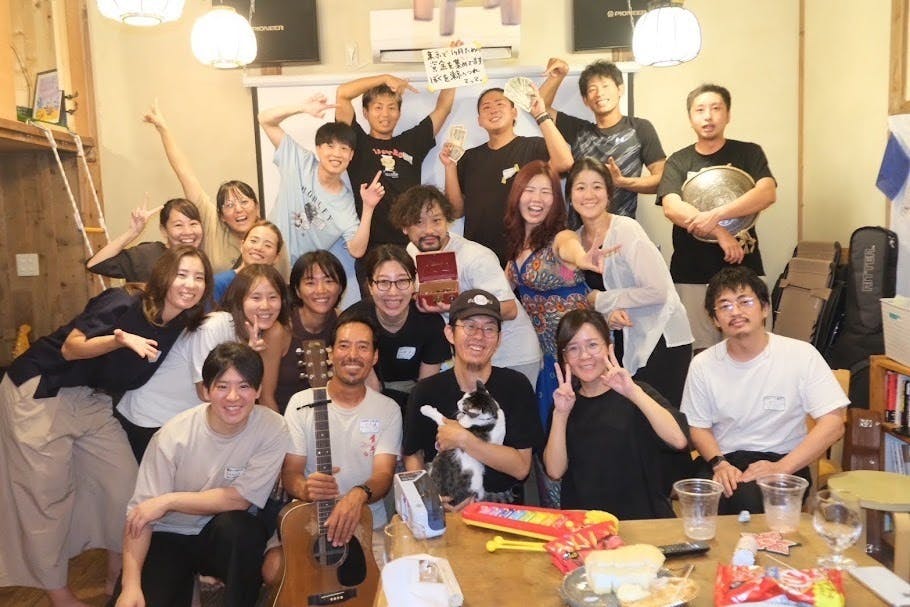 長崎県五島列島福江島のグットニートハウスで開いた「こんなクラファンはイヤだ」の合宿企画での記念写真