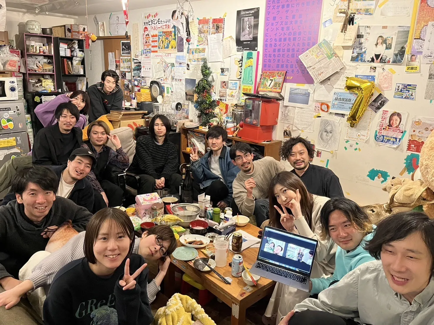 いろいろな人がやってきては宣伝したい事を貼っていくリビングの壁は、モテアマスの何でもありのおもしろさを可視化させる存在でもありました。