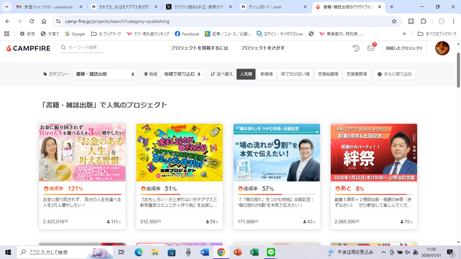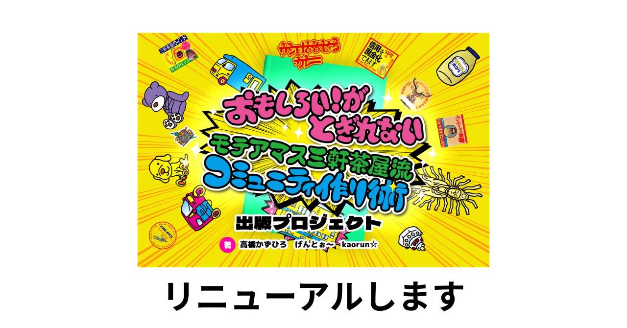 「『おもしろい!がとぎれないモテアマス三軒茶屋流コミュニティ作り術』を出版したい!」プロジェクト主催の高橋かずひろです。2025年12月10日に開始して2026年1月6日に終了した本プロジェクトは、125人の支援者の方から108万7000円の支援を頂き、達成する事ができました。 まずはプロジェクト実施にあたり、周りの人をよく見ない支援集めの活動で多大なご迷惑をかけてしまった事をここに深くお詫び申し上げます。 そんな私を温かく見守っていただき、プロジェクトを手伝っていただいた方々、そして何よりも支援をしていただいた方々に厚く御礼申し上げます。 今回のプロジェクトを通じて2年以上ずっと活動してきた制作チームとの意見のぶつかり合いが実施期間中に頻発してしまったり、たくさんのアクシデントが発生して、プロジェクト開始から何度もあきらめかけてしまったのですが、制作チームの人々と意見をもう一度出し合い、手法を少しずつ変えながらプロジェクトを行い達成できた経験から、私かずひろは個人で動くだけの性格から、他者を信じて尊重しながら行動できる性格に変化した気がします。 支援をしていただいた方々へのリターンの実行に関しては追って連絡致します。引き続き「『おもしろい!がとぎれないモテアマス三軒茶屋流コミュニティ作り術』を出版したい!」プロジェクトをよろしくお願いいたします。