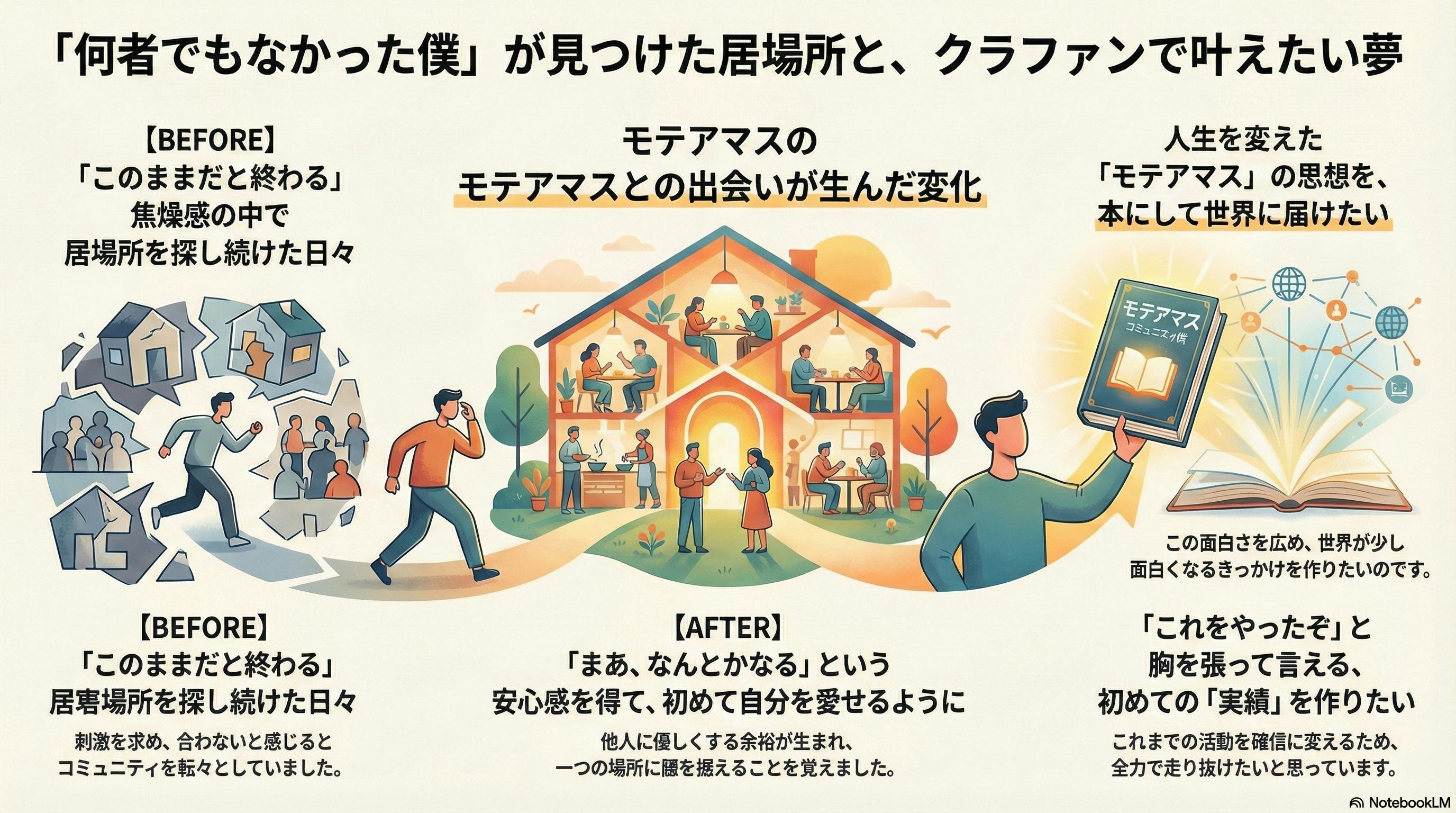 モテアマス本制作チームの人々はクラファンの歴戦の猛者です。こんな信用度がほぼゼロの僕のクラファンに支援者を集めてくれて感謝しかないです。なぜこんなに問題が起こりまくってしまったかと言いますと、、