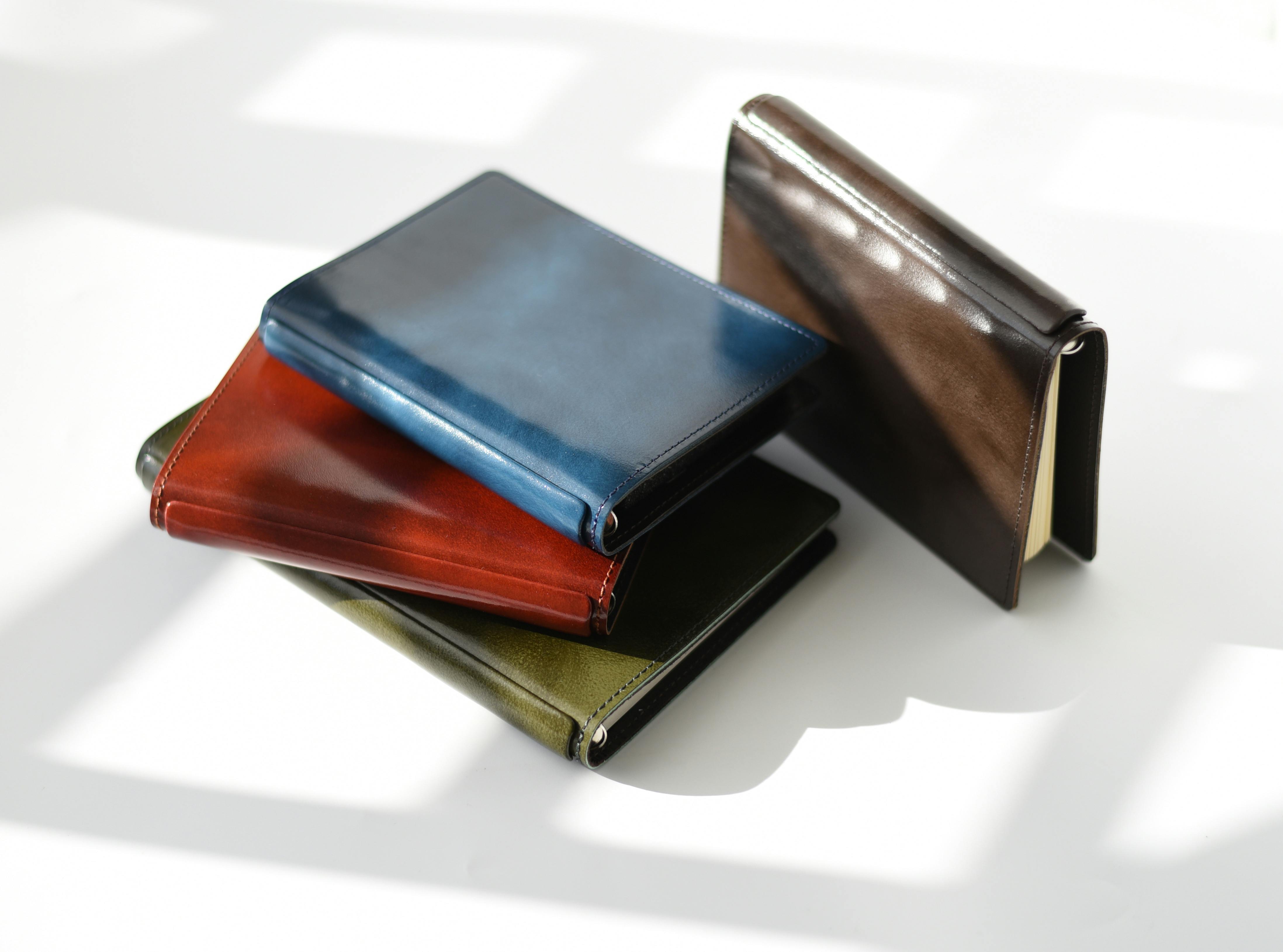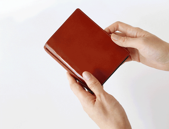 また、光の加減や角度で色味が微妙に違う奥行きのある表革(牛革)と、色移りしにくい顔料仕上げの裏革(豚革)のコンビで、書き心地はもちろん、周りの目も惹く逸品です。