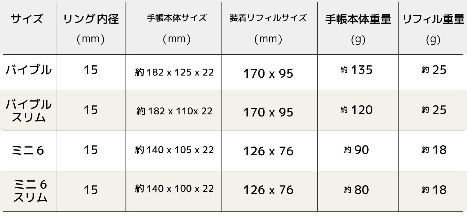 ◎ バイブルサイズとミニ6サイズについて新たにスリムサイズをリリース!