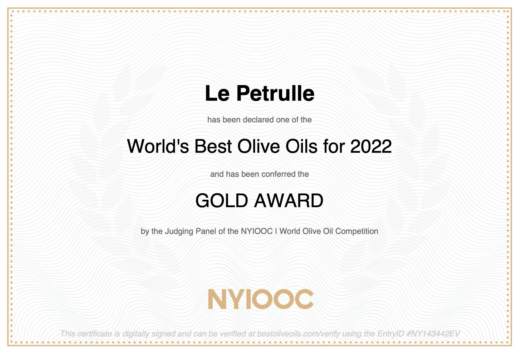 そして、クラウドファンディングで立ち上げたゴール「世界で一番美味しいオリーブオイルを作ること」。これも少しづつ成功に向かっています。2022年には、世界で一番取るのが難しいと言われているNYIOOC(ニューヨーク国際オリーブオイルコンテスト)にて金賞をいただきました!