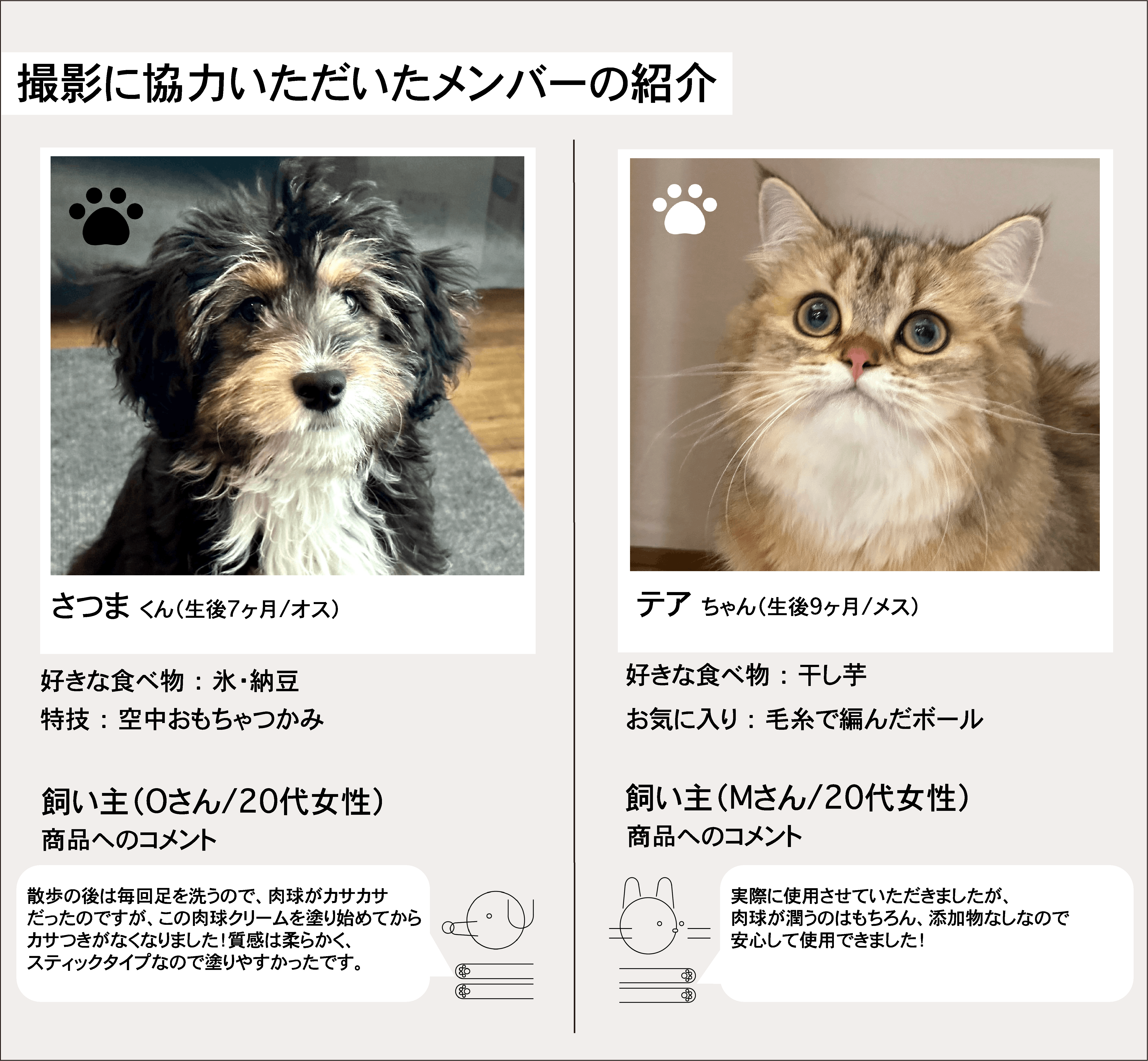 また、今回いただいたご支援でペットブランドを展開するための商品開発に充てたいと考えています。これからも本当に安心できる商品開発に励みますので、皆様のお力添えをよろしくお願いいたします。