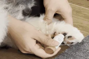 ③優しく撫でるように肉球1つ1つに塗ります。