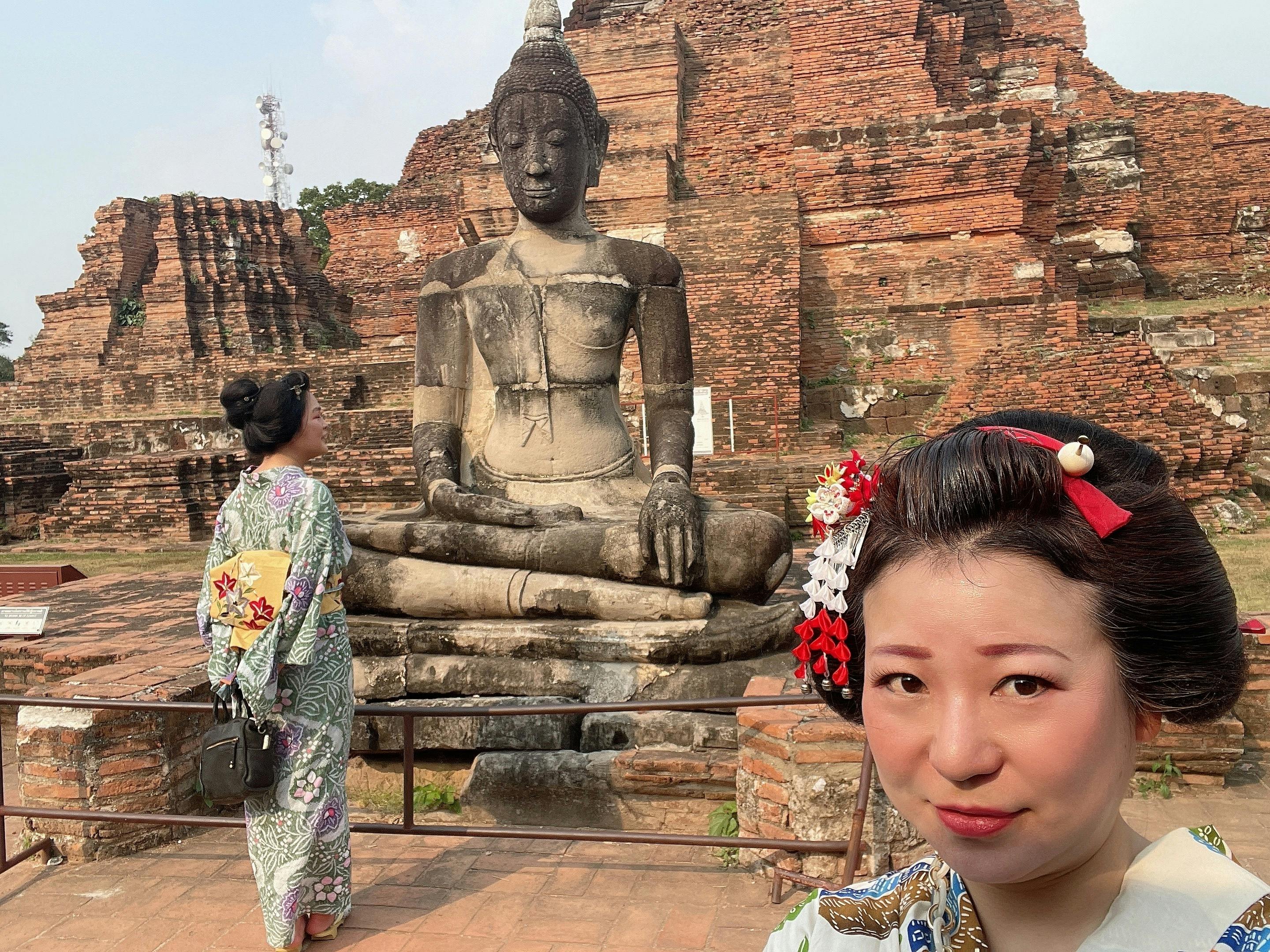 こんにちは!今日は、今年の2月にメンバーのミシェル由衣と浅草アリスと一緒にタイを訪れたときのことを少しだけ振り返りたいと思います。日本では真冬の2月でも、タイは真夏の様なお天気。毎日が本当に暑くて、夏着物ですら着るのが厳しい陽気だったので、私たち二人は浴衣や麻の着物で過ごし、足元は裸足に下駄で歩き回っていました。気分はまさに真夏!2月なのに、真夏の気候を味わうというのは、本当に不思議な気分でした。この暑さは日本の夏を思い出させ、盆踊りを踊るのハマりそうだなぁと思って、タイから帰国しました。帰ってきたらめっちゃ寒かった・・・。タイのJapanEXPOで皆さんと一緒に踊れることをとても楽しみにしています。真夏気分で楽しむ盆踊り、一緒にいかがでしょうか?タイの現地で踊るリターンご用意あります。引き続き、応援とご支援をよろしくお願いします!