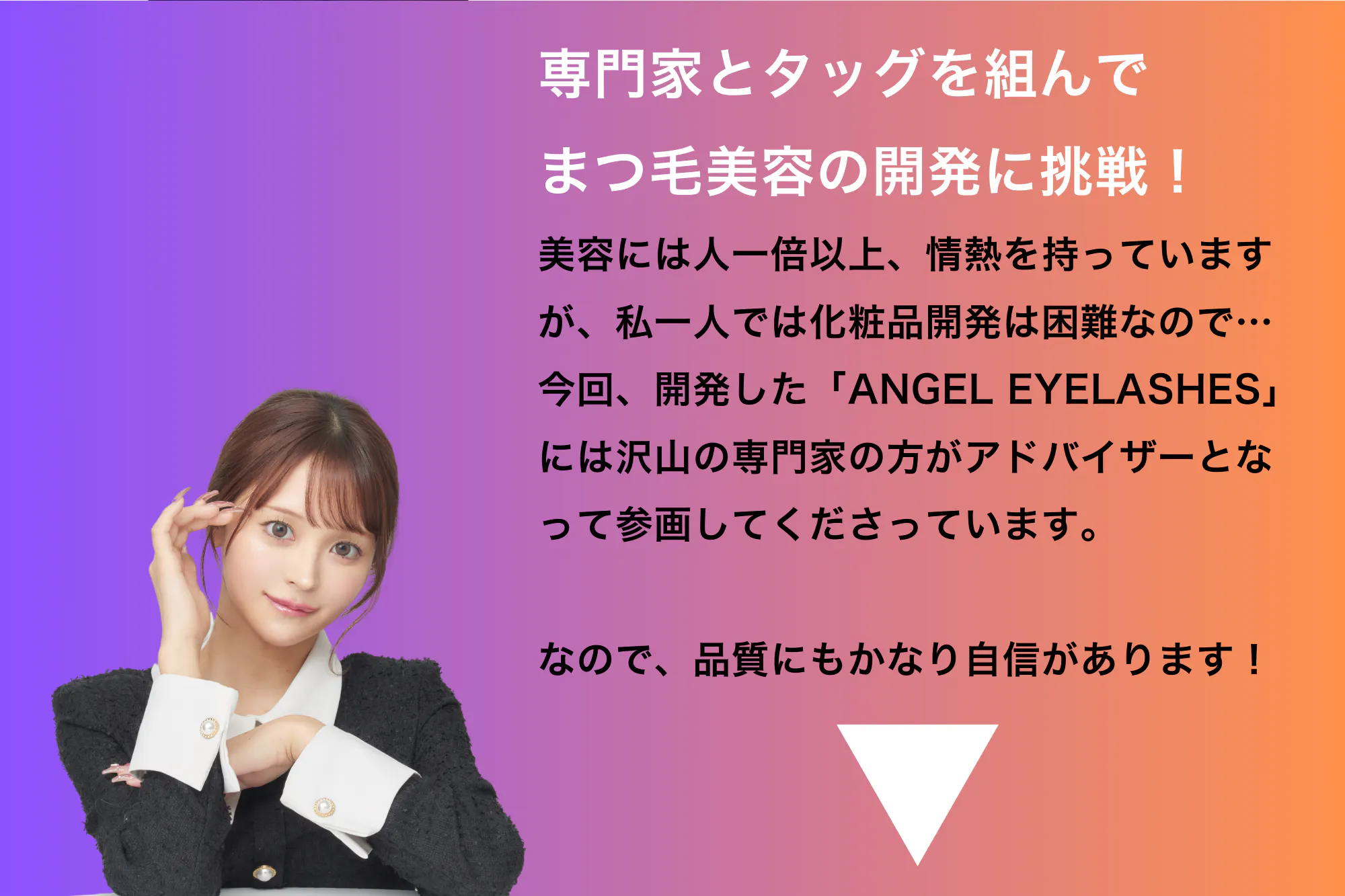 そんな方に、安心して使用できる高品質な製品をお届けします。また「ANGEL EYELASHES」を通じて、日々のまつ毛ケアが楽しくなるような、そんな体験を提供できたら嬉しいです!