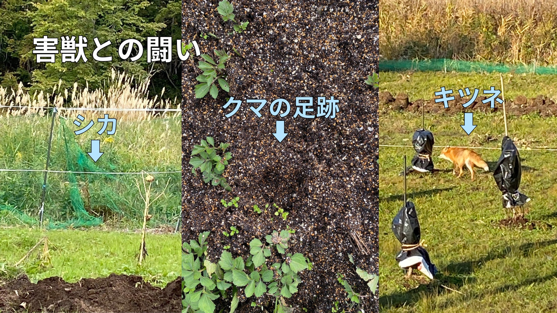 囲いは鹿に壊され、そこから熊・鹿・キツネなどが畑に侵入し、移植したブルーベリーの木は実も葉も全部食べられて枝だけになってしまいました。