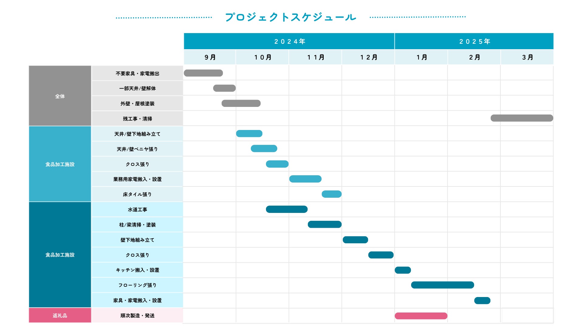 古民家のリノベーションについては、以下を目途に進めていく予定です。