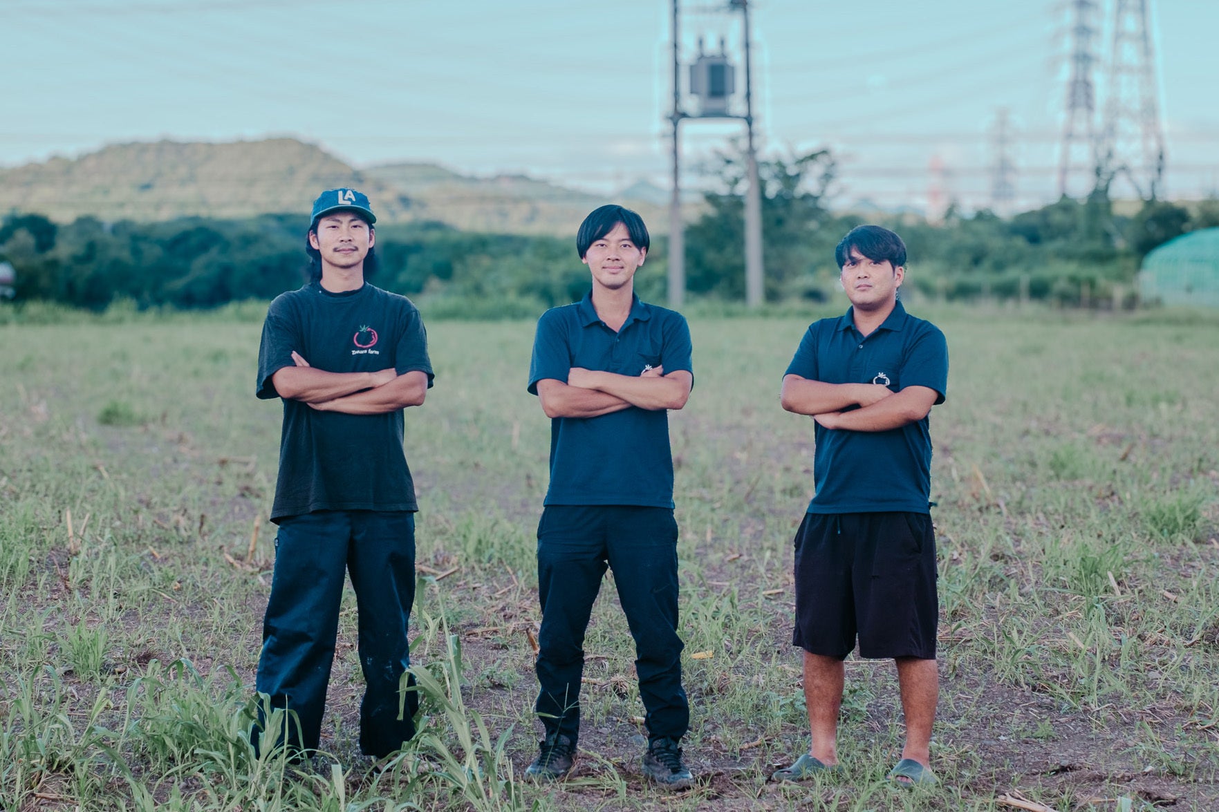 左から トマト栽培担当:コタ 代表:川村雄祐 イチゴ栽培担当:ひらたま
