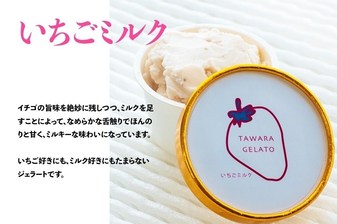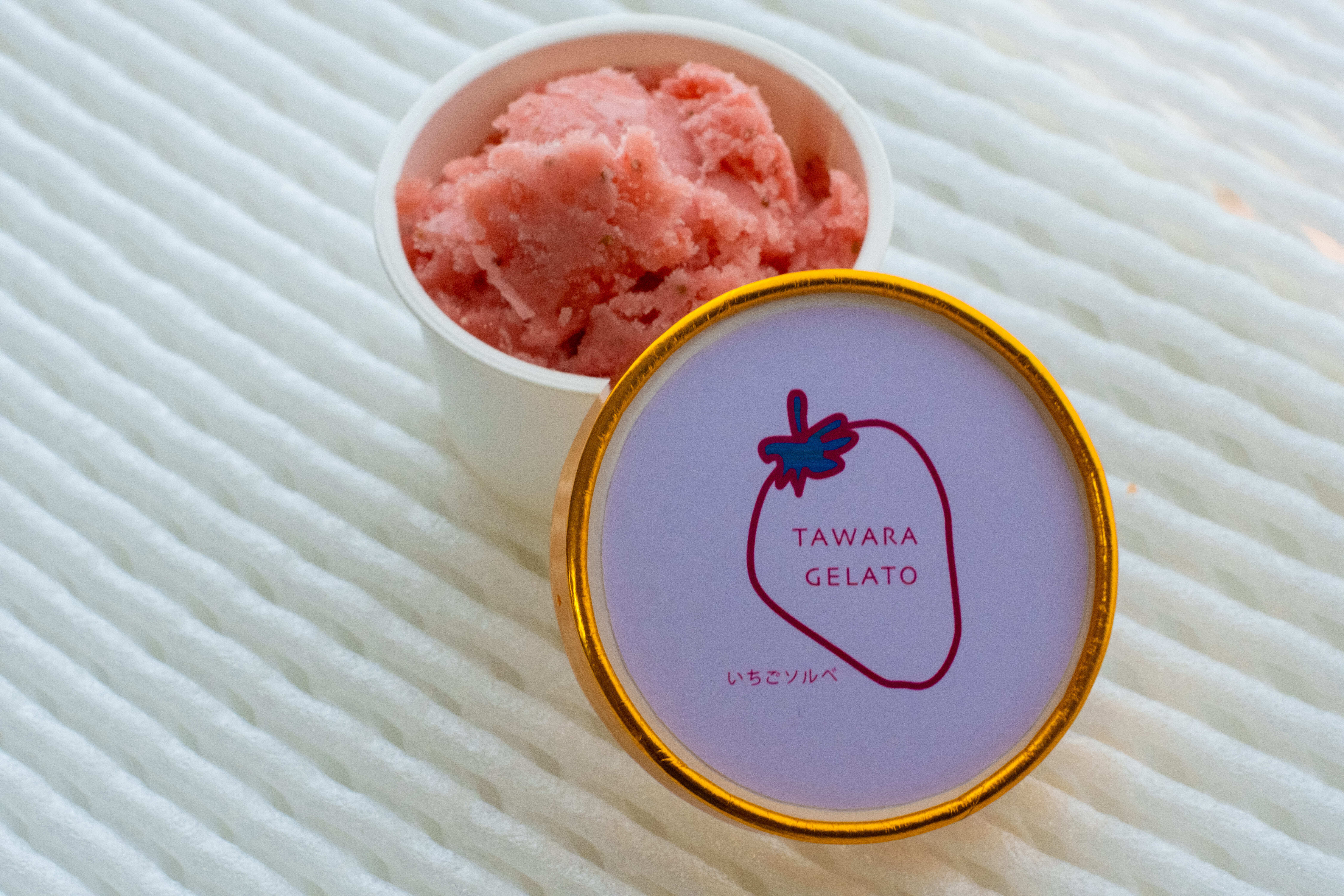 たわらファームで育てているイチゴを使った「いちごソルベ」「いちごミルク」