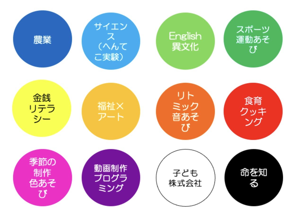 スポーツ、自然体験、食育、プログラミング、アート、サイエンス、子ども株式会社(金銭教育)などなど、20以上の豊富なカリキュラムがあり、その専門分野のプロ講師が、”アソビ”を入り口に非認知能力を育成する学びを提供しています。